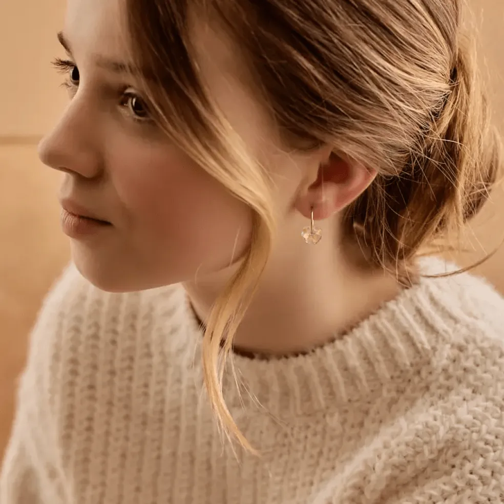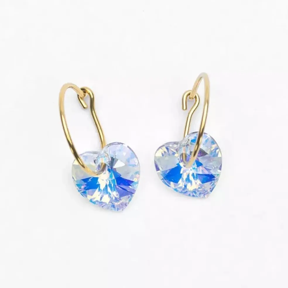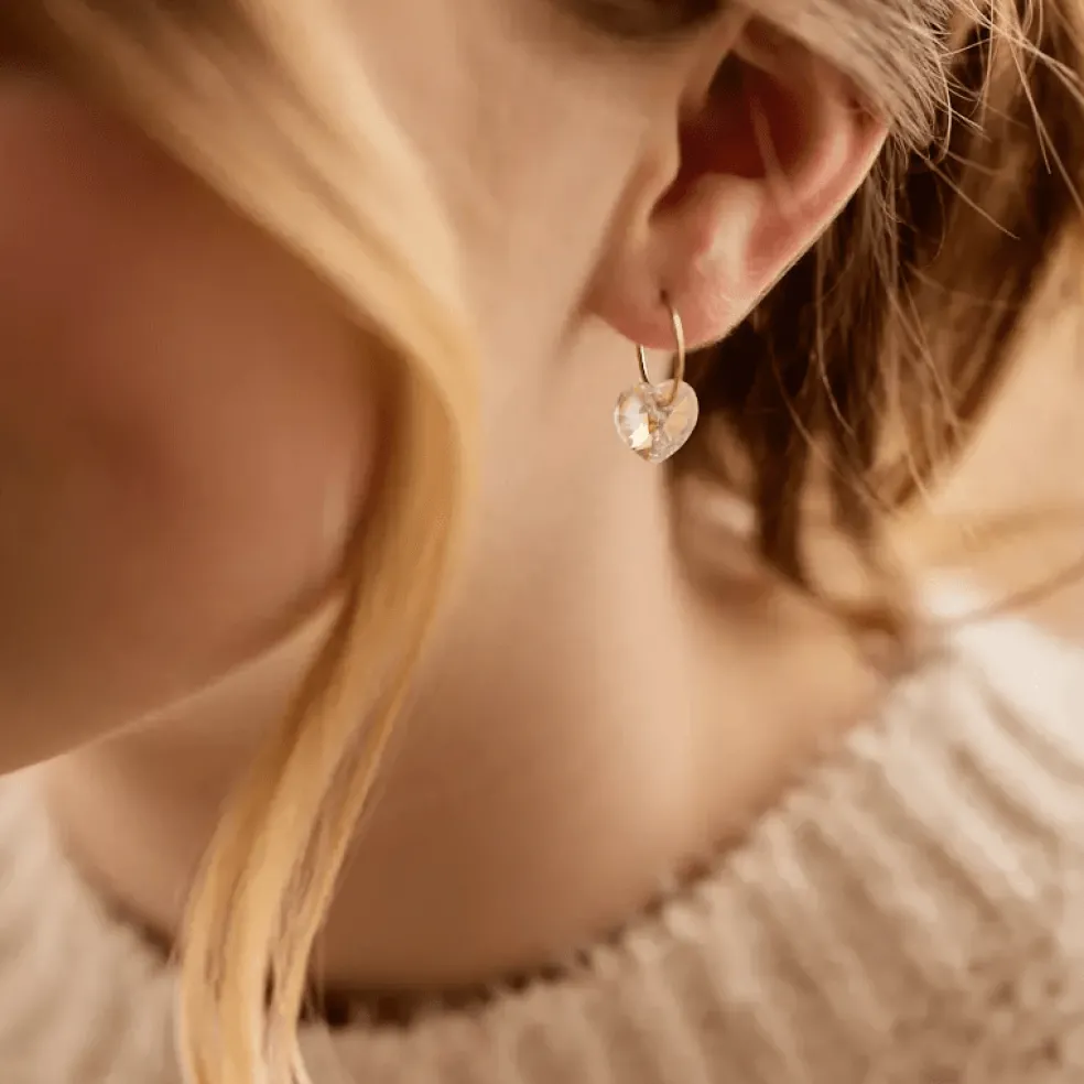 Hjärtformade kristallörhängen på ring i guldfärgat titan är en perfekt kombination av elegans och magi.