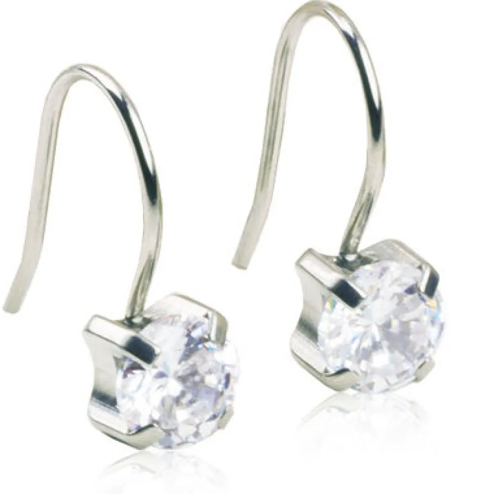 Eleganta örhängen på krok i medicinsk titan med en klar cubic zirkon på.