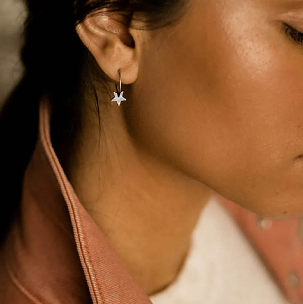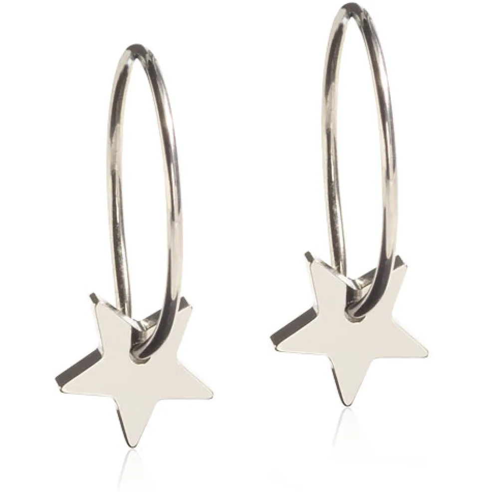 Örhängen i ren medicinsk titan, så bekväma att du kan använda dem dagligen. Här med en stjärna på en 1,4cm stor ring.