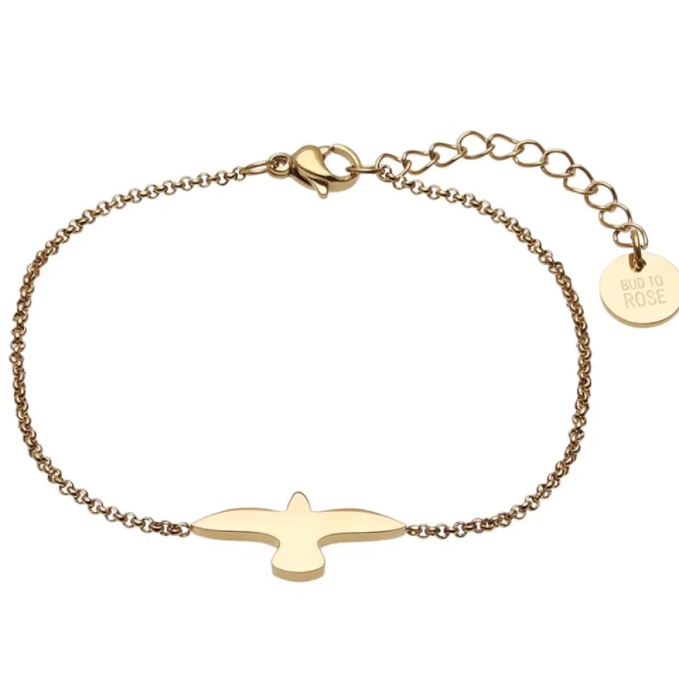 Armband i guldpläterat stål från Bud To Roses populära serie Dove är en tidlös och elegant accessoar som förmedlar både stil och mening.