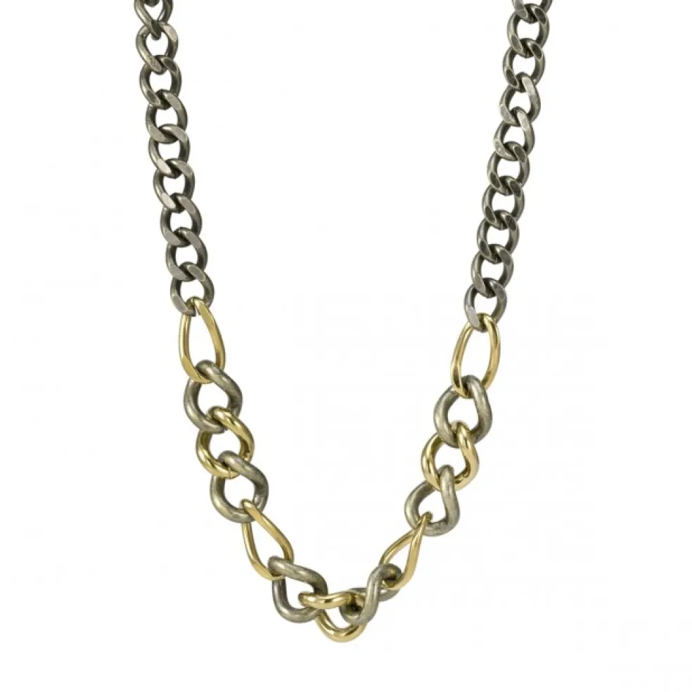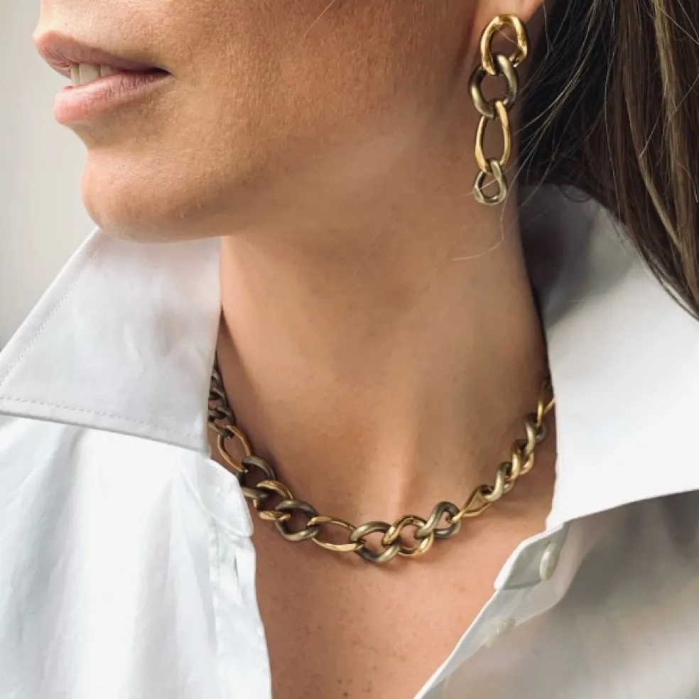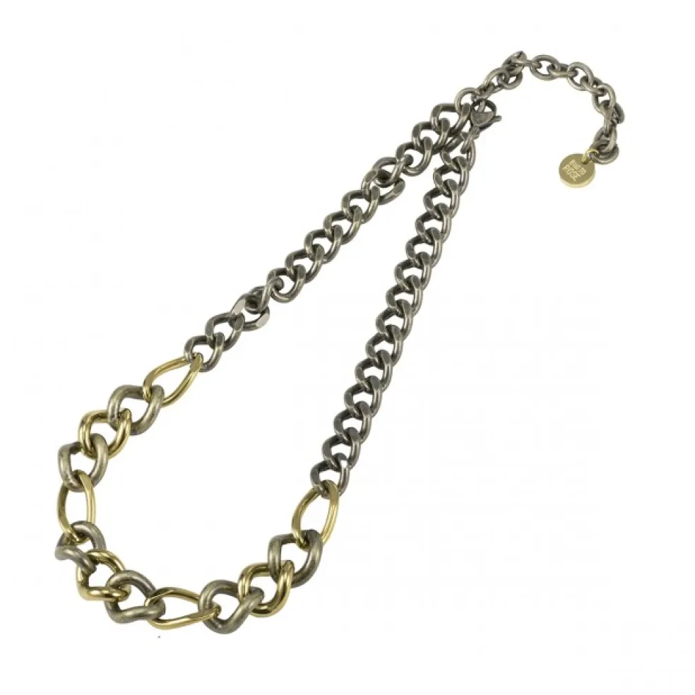 Intressant halskedja med en snygg kombination av guld och antikbehandlat stål. Modellen heter Ganni och kommer från Bud To Roses.