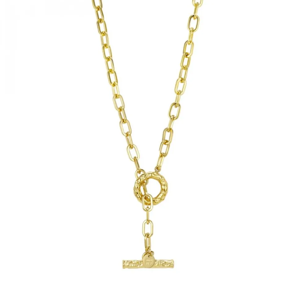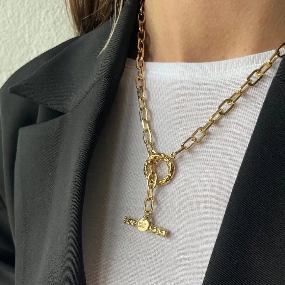 En 50cm lång halskedja med T-lås vilket skapar en möjlighet att justera halskedjan i valfri längd. Låt T-låset löpa fritt genom ringen!