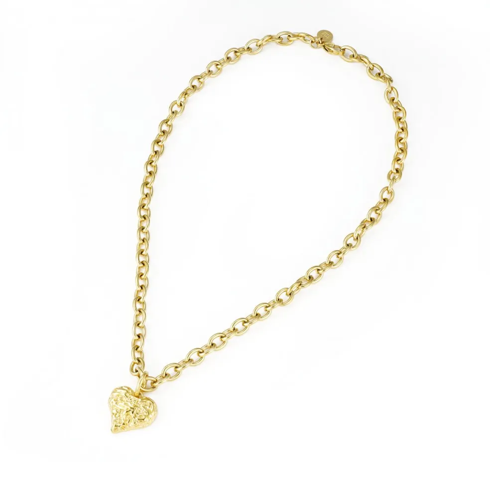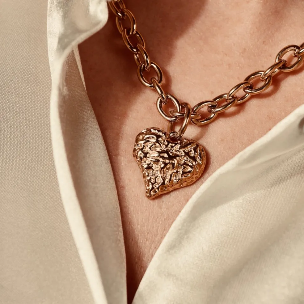 Fint halsband med hjärta i rostfritt stål. Hjärtat är slätt på ena sidan och har en skrovlig yta på den andra sidan.