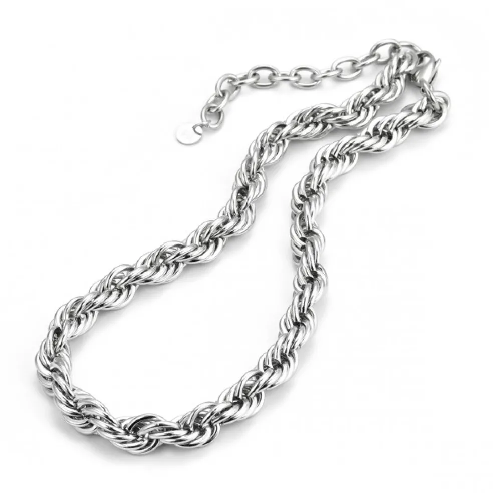 Ett lite kraftigare stålhalsband med tvinnad länk från varumärket Bud To Rose.