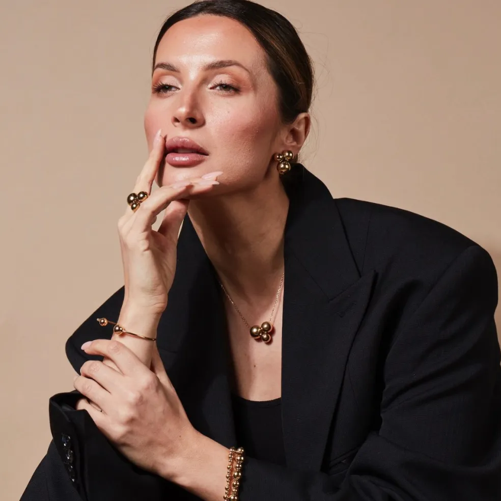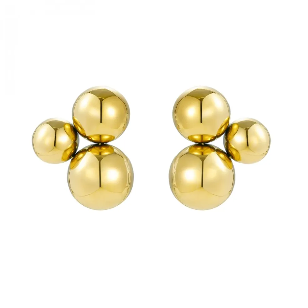 Trendiga stora guldfärgad kulörhängen med kulor i olika storlekar.