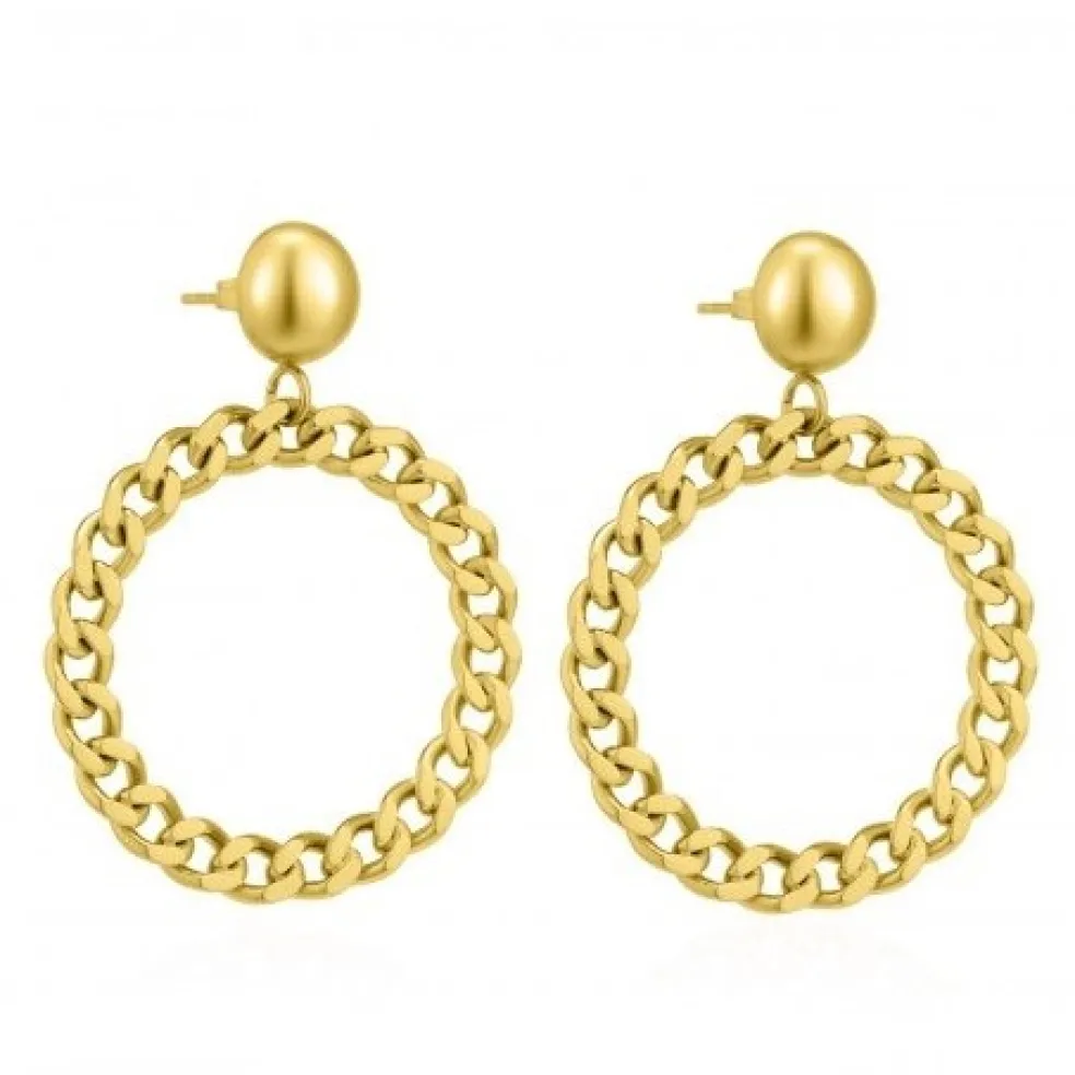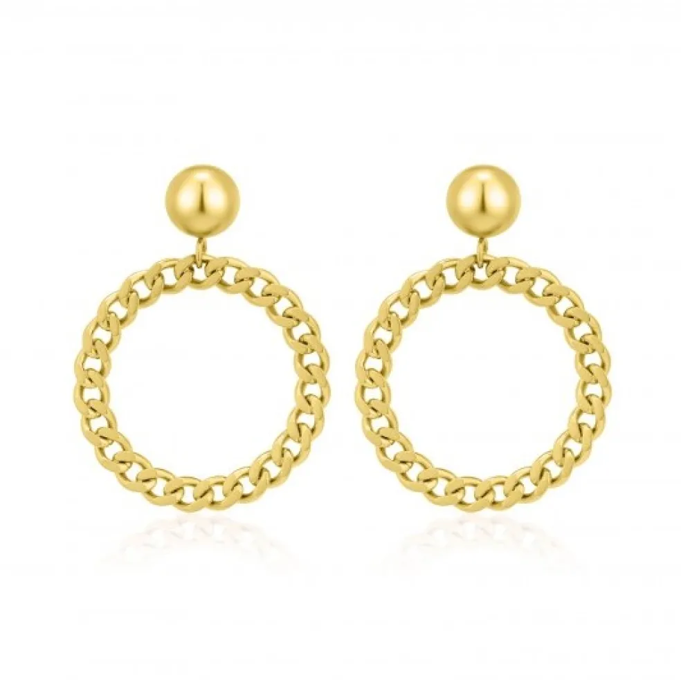 Läckra örhängen med en klassisk panzarlänk i cirkelform, här i guldplätering på rostfritt stål.