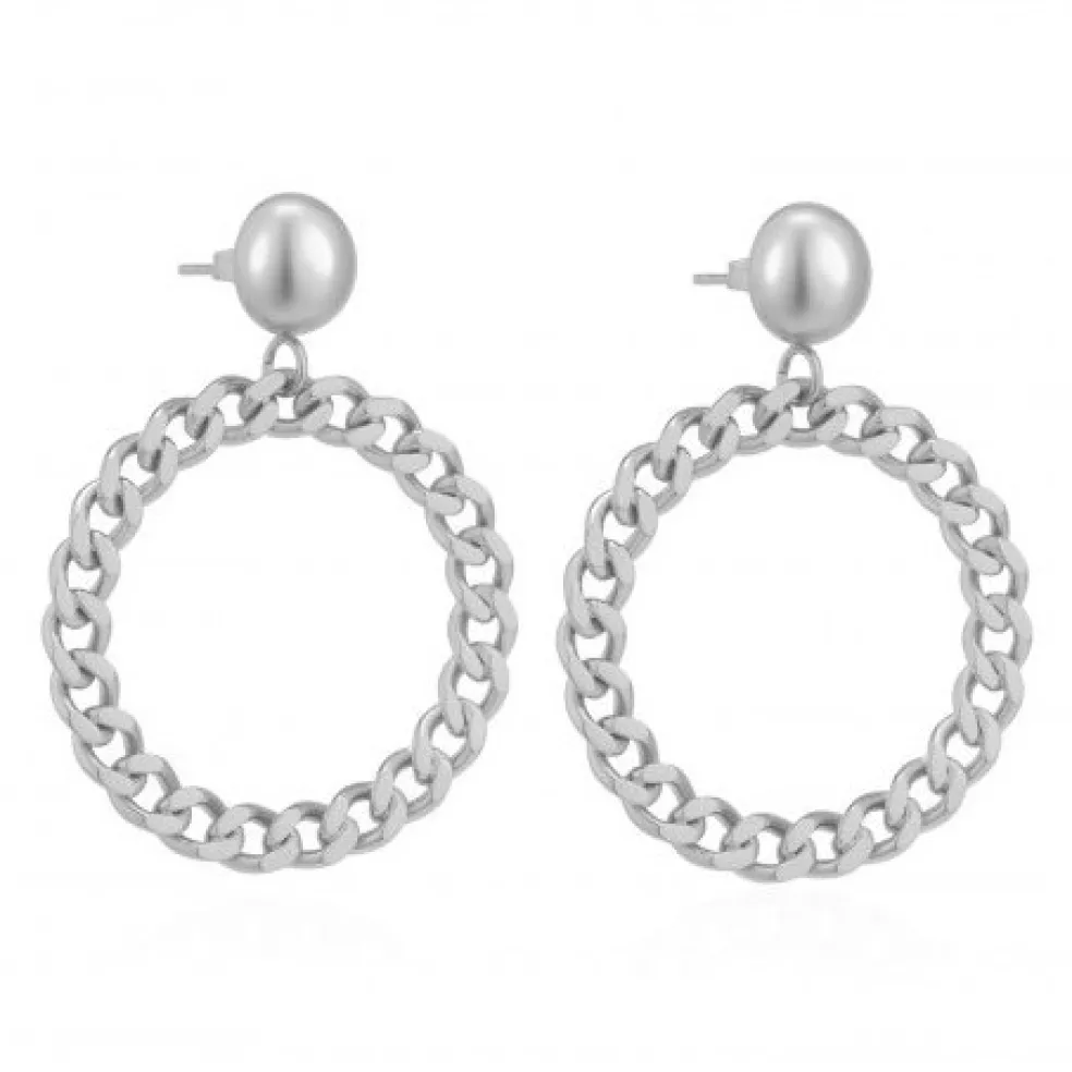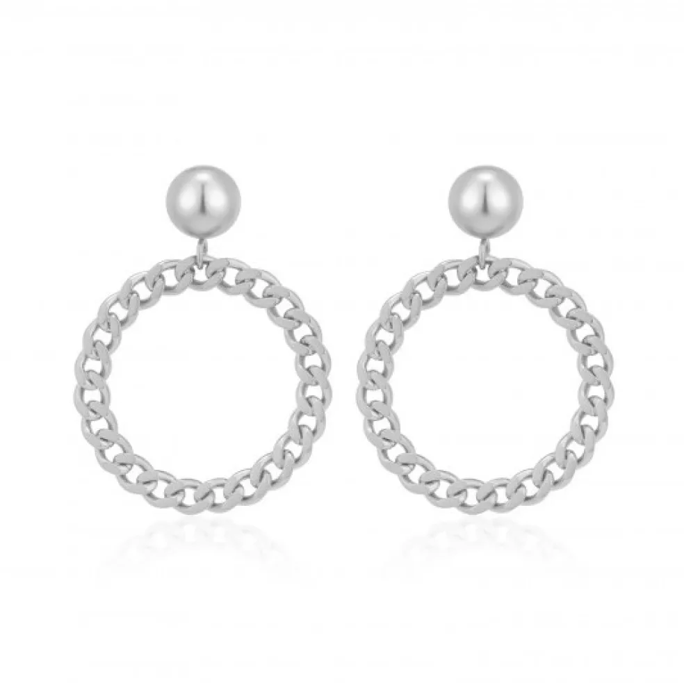 Läckra örhängen med en klassisk panzarlänk i cirkelform, här i stål.