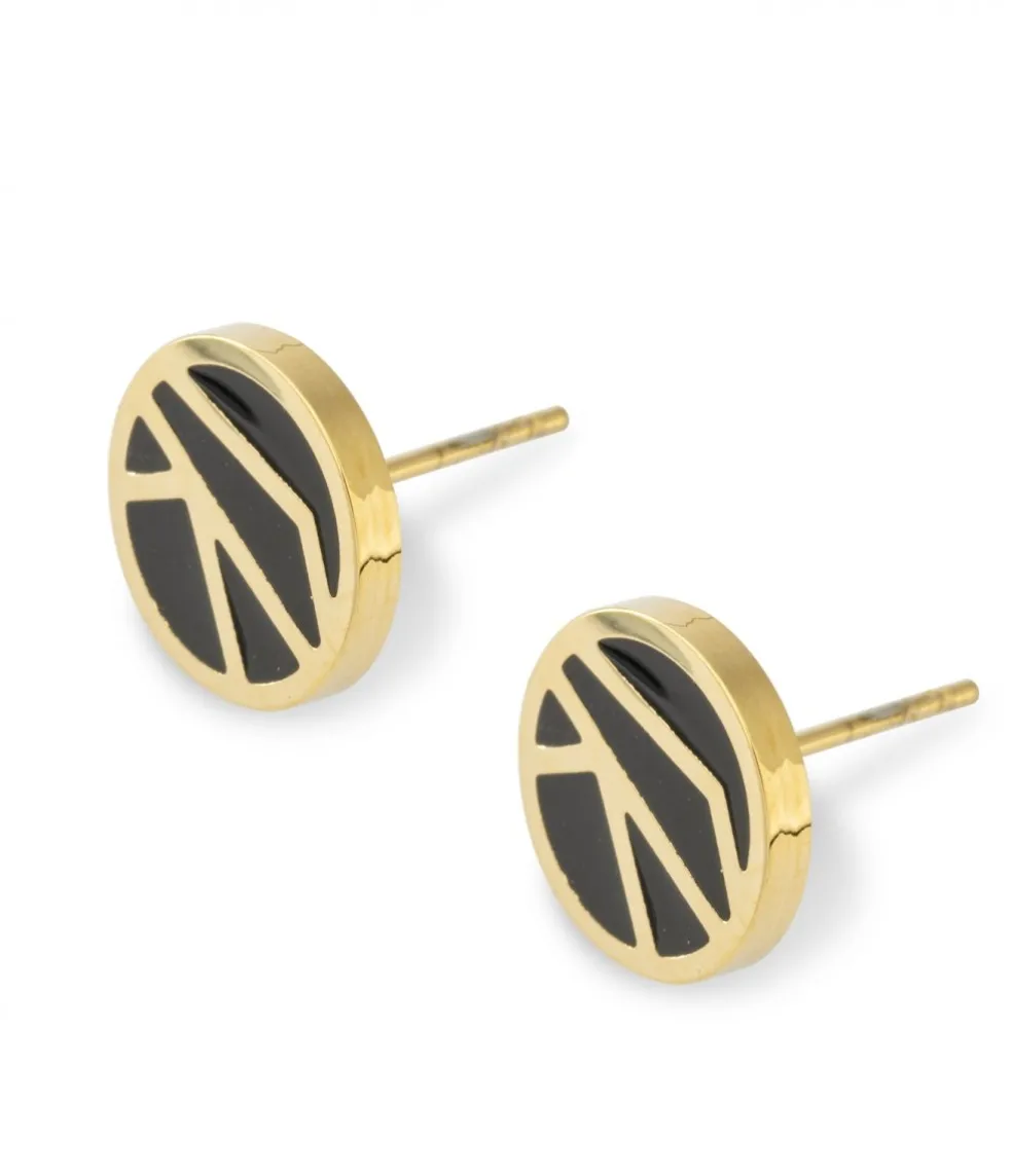 Snygga örhängen med ett grafiskt mönster i svart och guld, mönstret är en del av Bud To Roses logotyp och modellen finns även i flera delar att matcha med.
