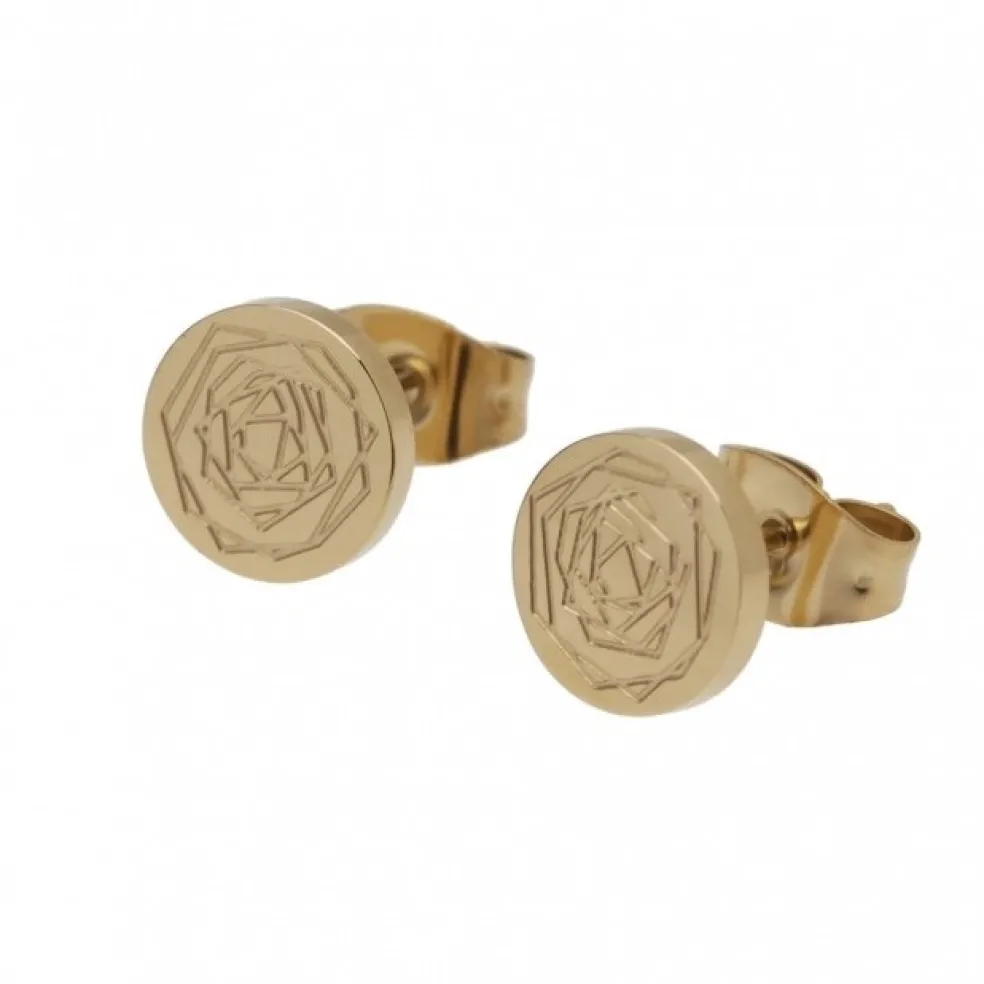 Små stiftörhängen med Bud To Roses eleganta ros på, här i guldpläterat stål.