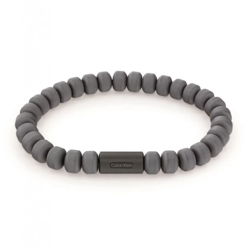 Elastiskt armband med totalt 30 stycken hemtitepärlor, modellen heter Barell och kommer från varumärket Calvin Klein.
