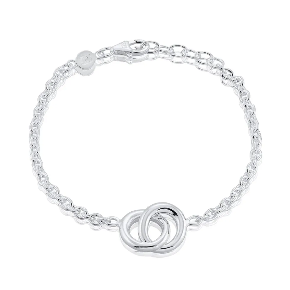 Elegant armband i äkta silver med två sammanbundna ringar.