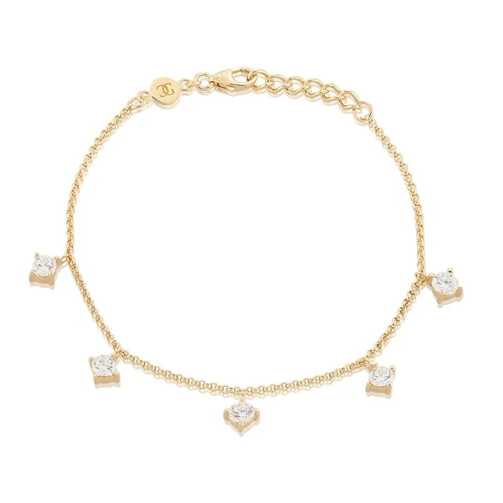 Armband i 24 karats guldpläterat silver med fem klara cibic zirkonier.