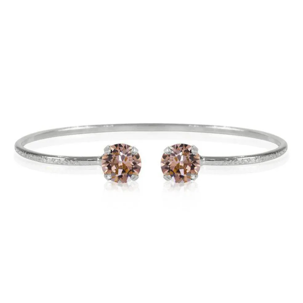 Tidlöst armband från Caroline Svedbom med rosa kristaller. Armbandets yta är hamrad, på det sitter två kristaller av bästa kvalité.