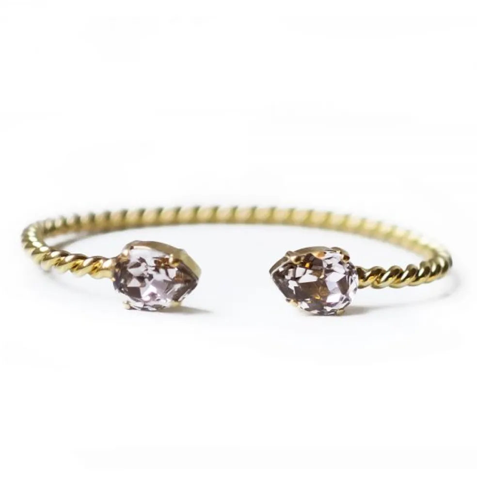 Ett elegant armband från Caroline Svedbom där bandet får en känsla av rep tack vare den vackert vridna metallen. Armbandet avslutas med två droppformade kristaller av bästa kvalité.