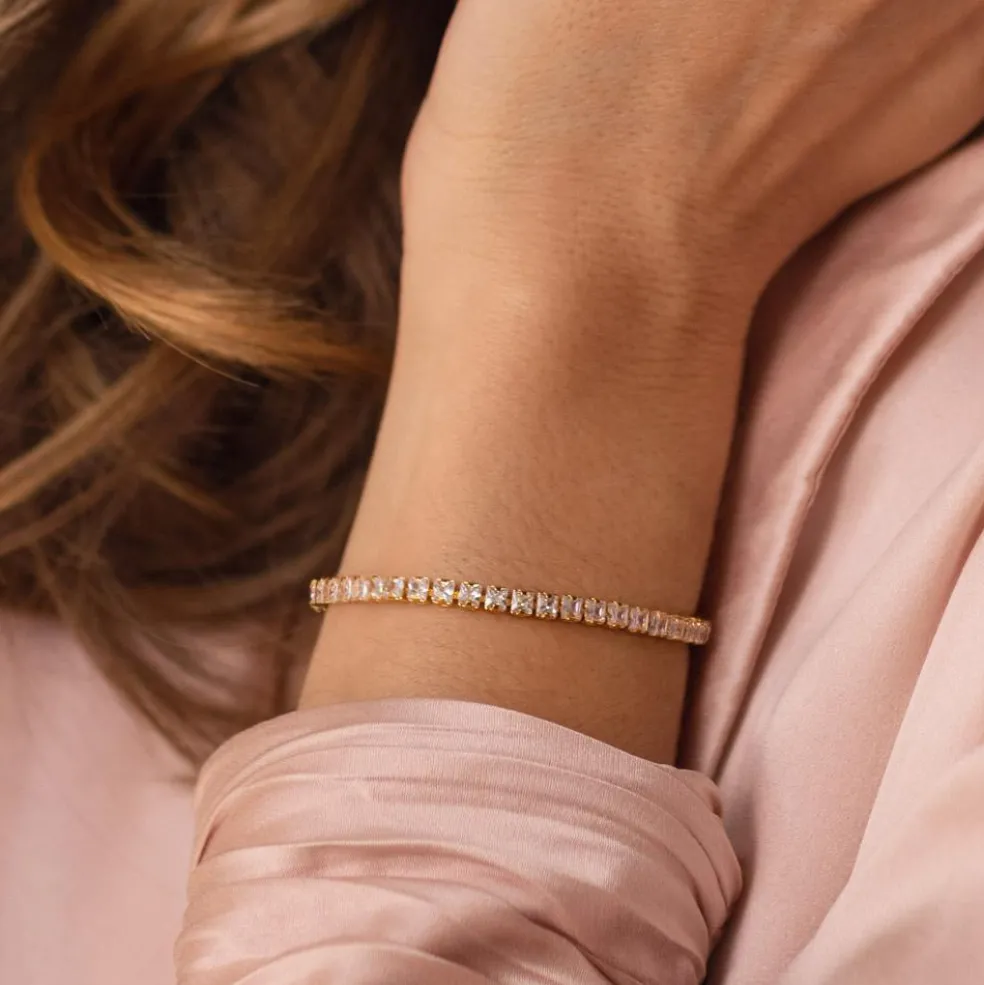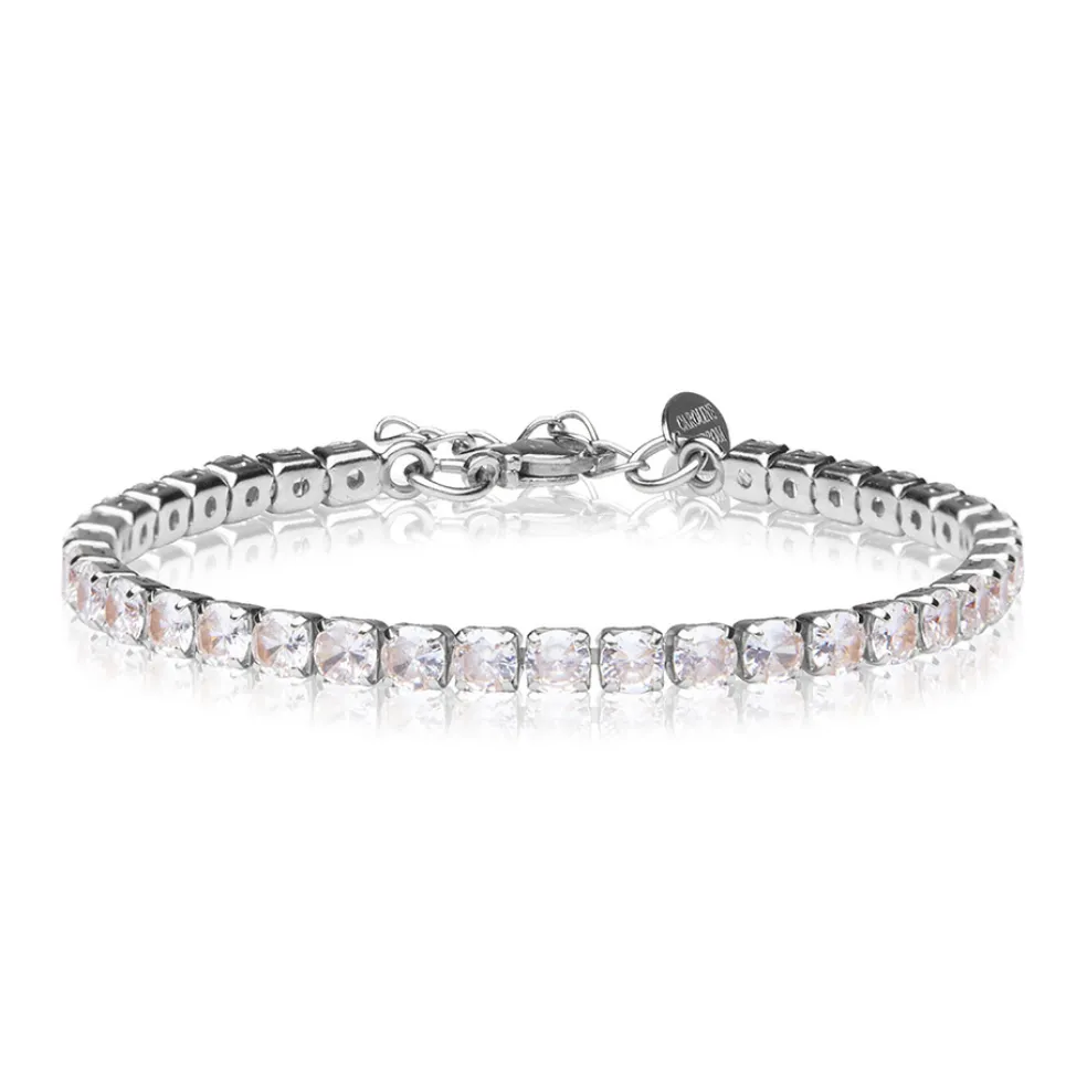 Klassiskt så kallat tennisarmband i rhodiumplätering med klara Cubic Zirconia kristaller på.