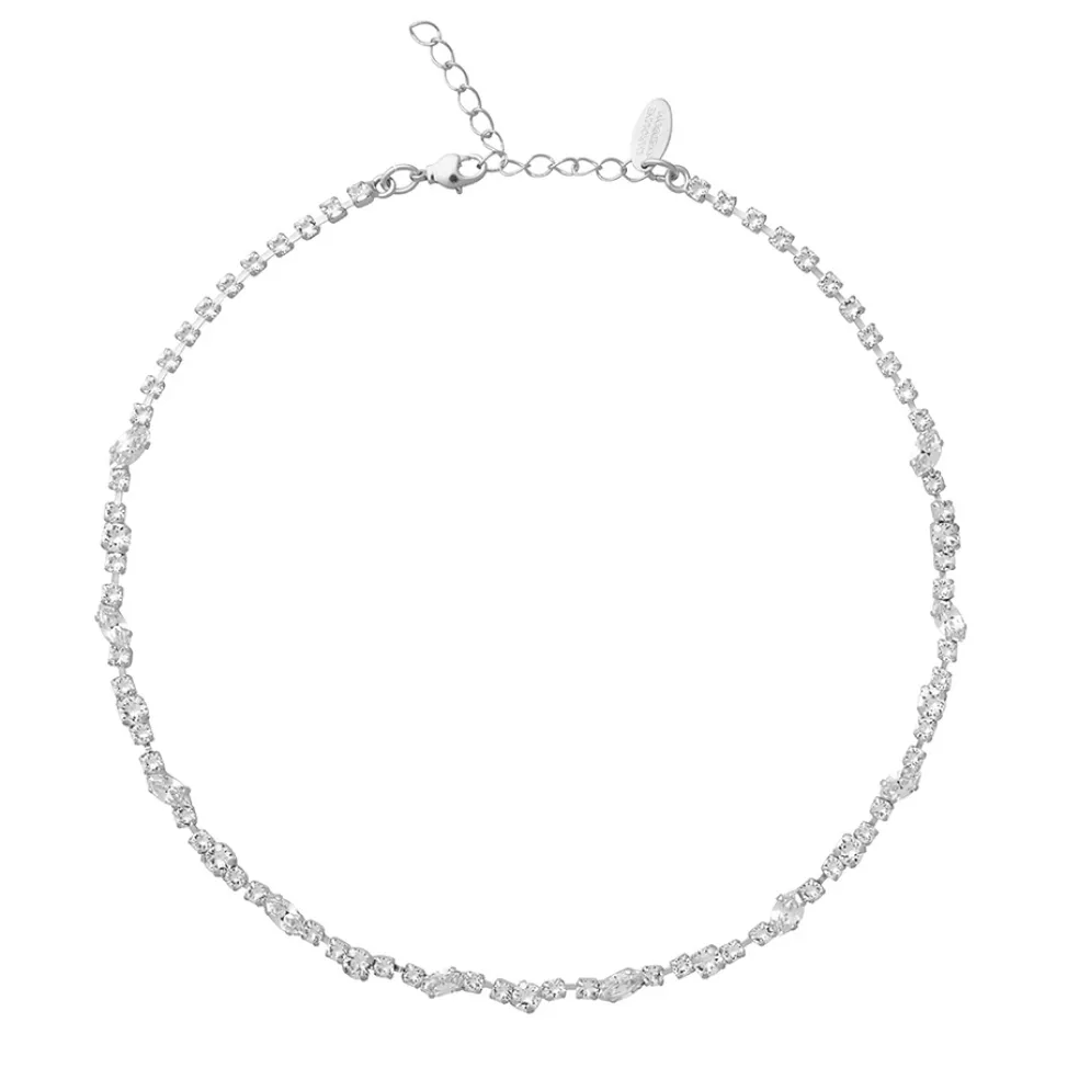 Skapa en chic look med Caroline Svedboms Antonia-halsband. Detta gnistrande halsband ses här i rhodiumplätering och klara kristaller på.