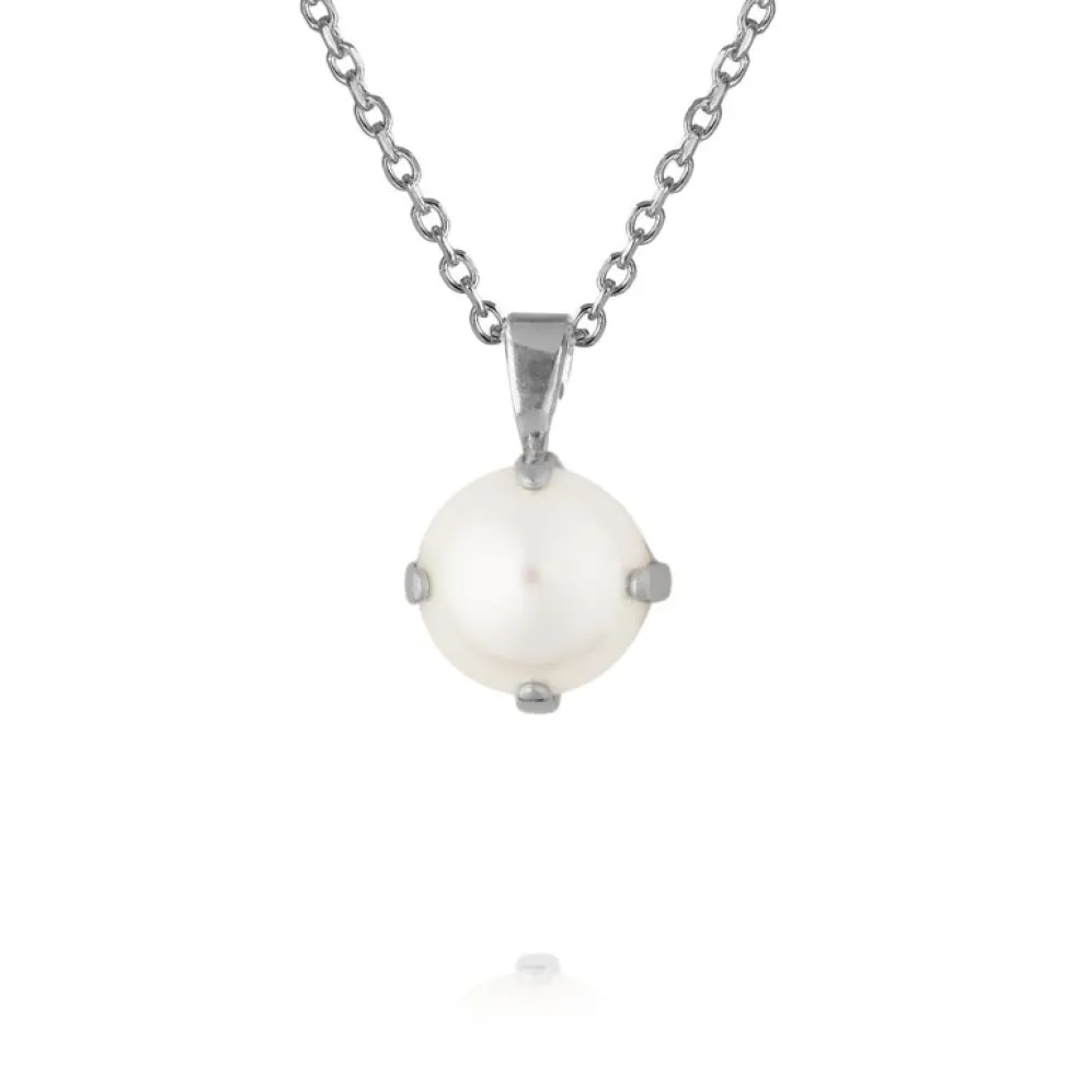 Modell; Classic Petite Necklace Rhodium Pearl.