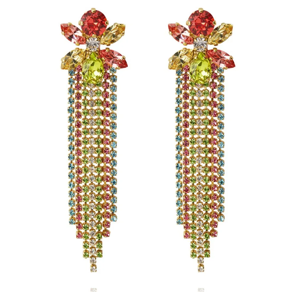 Säsongens coolaste örhänge för en glamorös look? Ciara Earrings! Med en lekfull design som präglas av gnistrande navettkristaller och hängande rhinestones är Ciara Earrings det perfekta valet för att addera glamour till dina looks. Här i färgkombinationen Tropicana Combo.