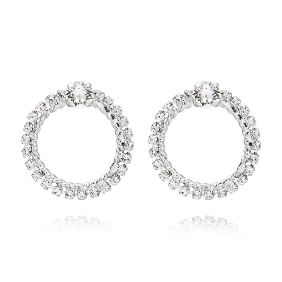 Här ett par vackra örhängen i rhodiumplätering med klara kristaller, allt för att visa upp din raffinerade smak, elegans och snygga stil.
