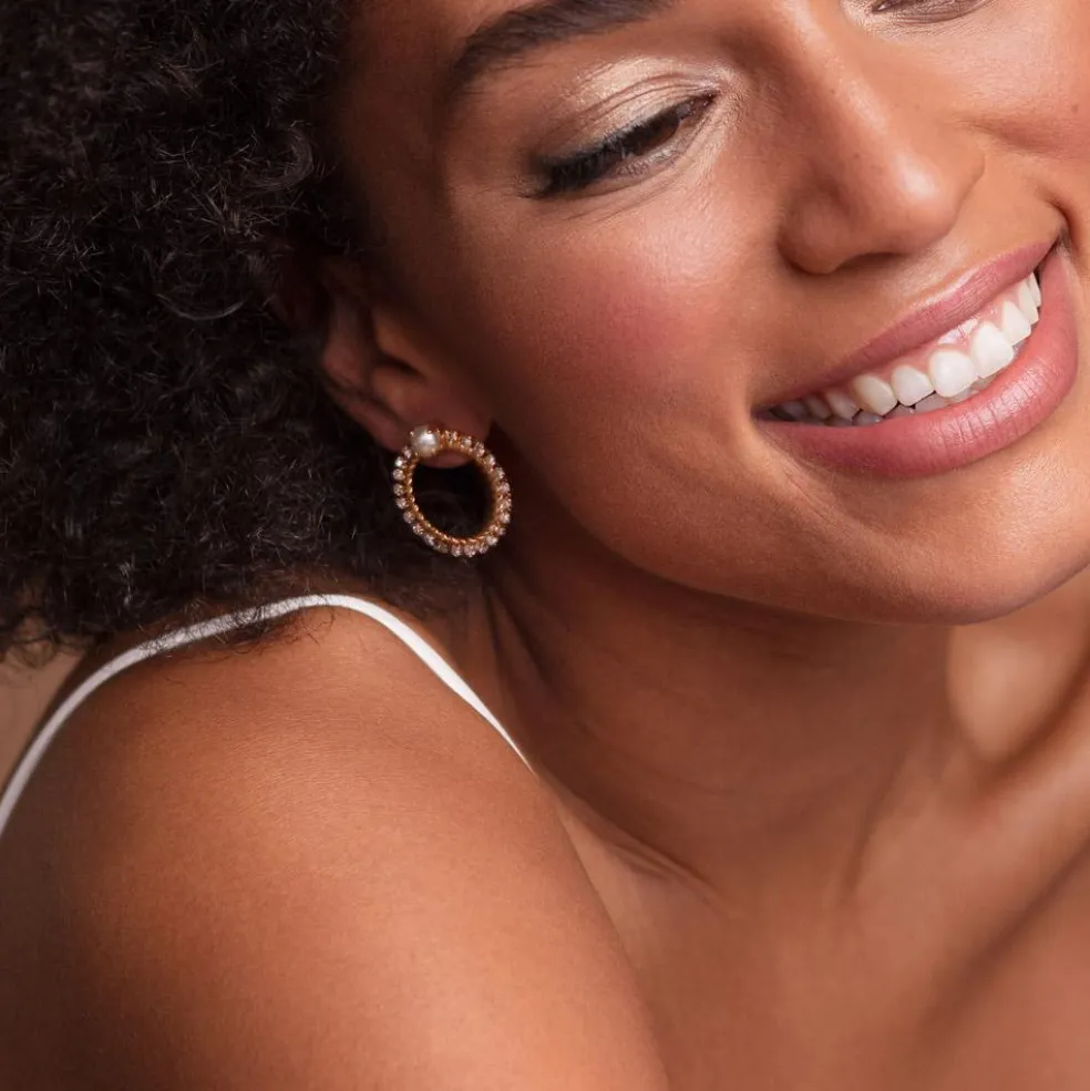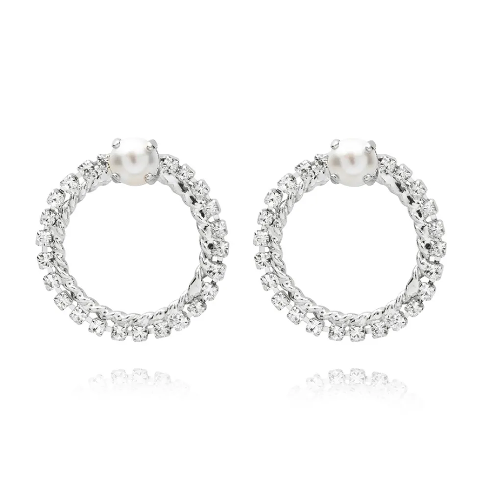 Modell; One Love Earrings Rhodium Pearl Crystal.