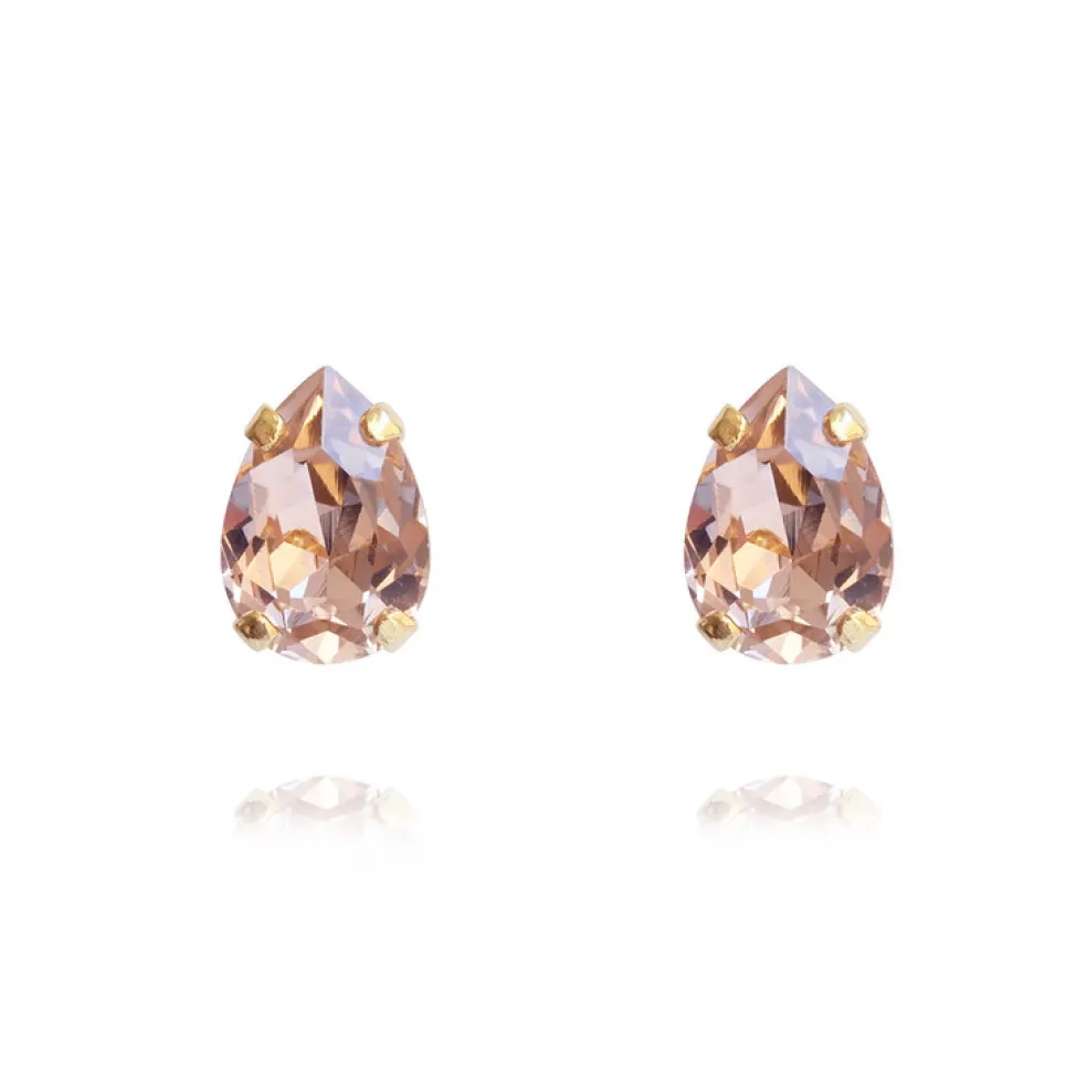 Små droppformade örhängen av modellen Petite Drop Stud från varumärket Caroline Svedbom, här i färgen Guld / Vintage Rose.