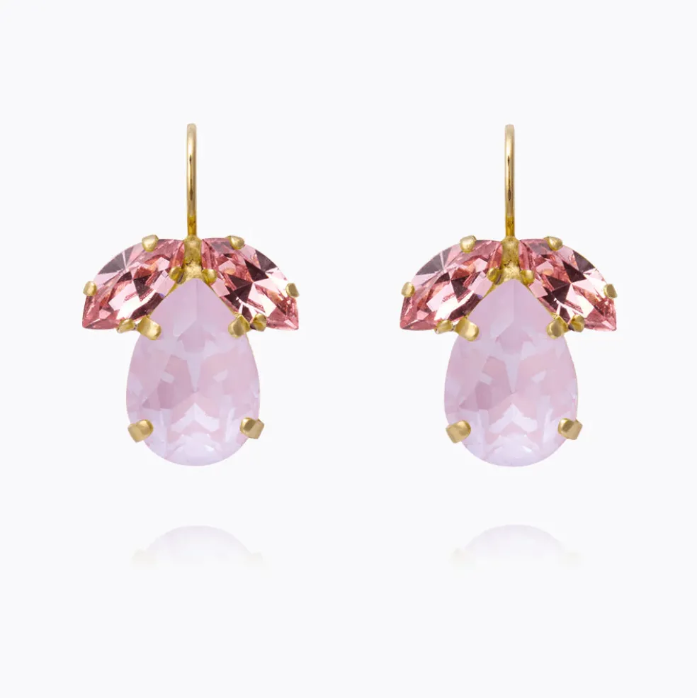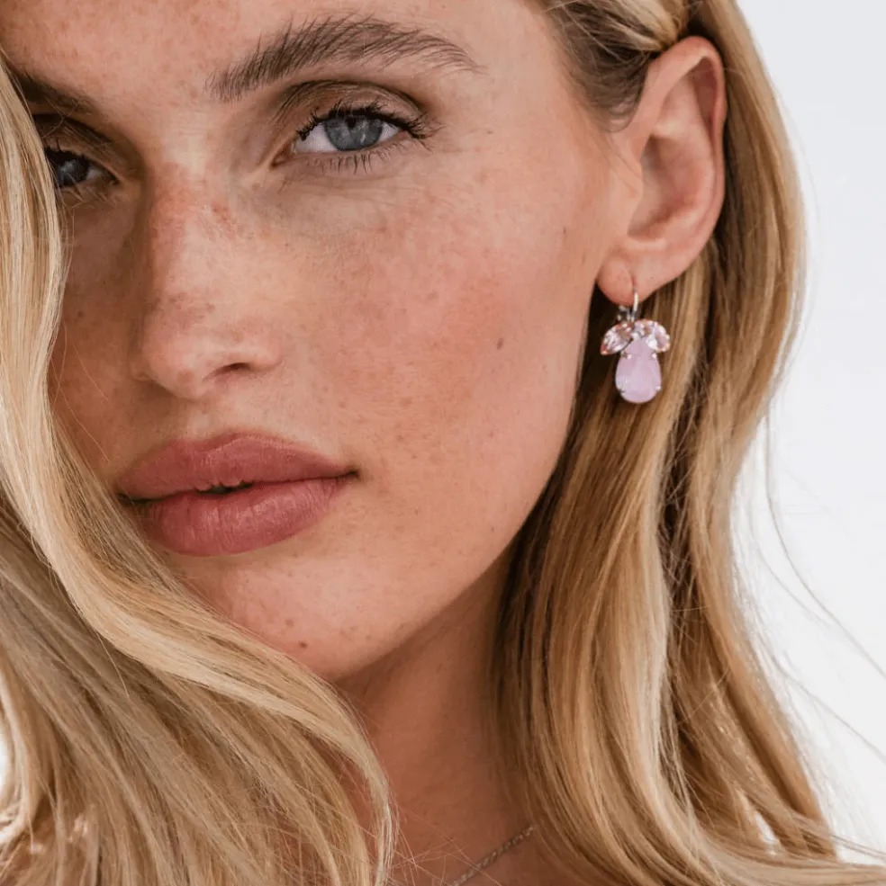 Timo är ett par eleganta och snygga örhängen med en droppformad sten och två mindre kristaller på sidorna. Dessa örhängen är tillverkade med gnistrande kvalitets kristaller på en elegant krok. Örhänget har en guldfärgad metall och med färgkombinationen Soft Pink Combo.