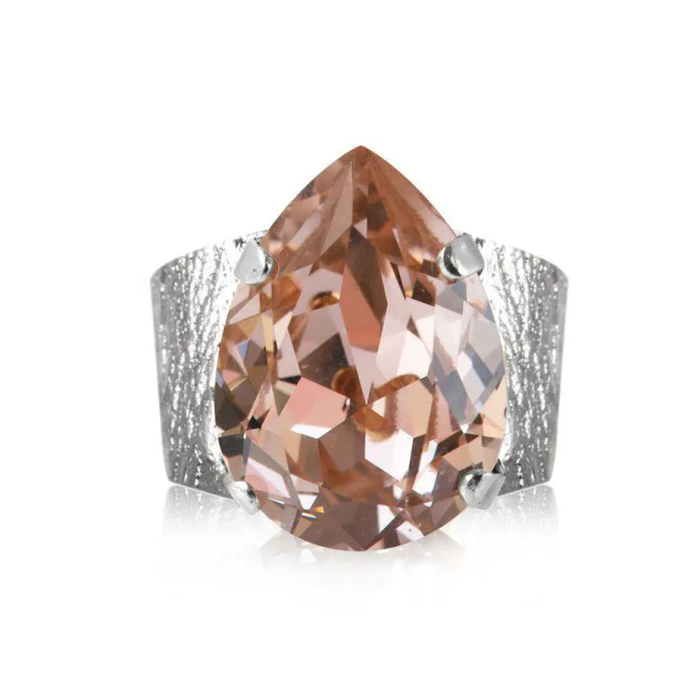 Ring av modellen Classic Drop med en stor droppformad kristall på från varumärket Caroline Svedbom, här i rosa färg.