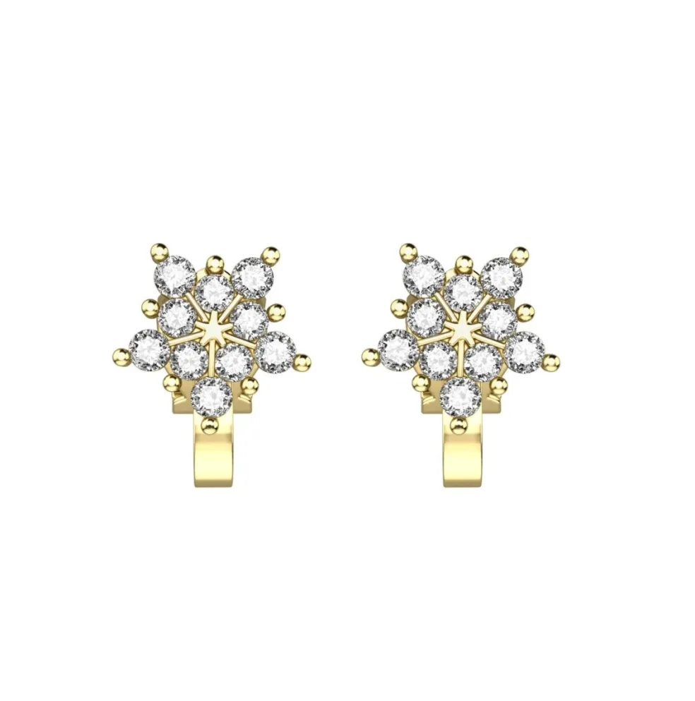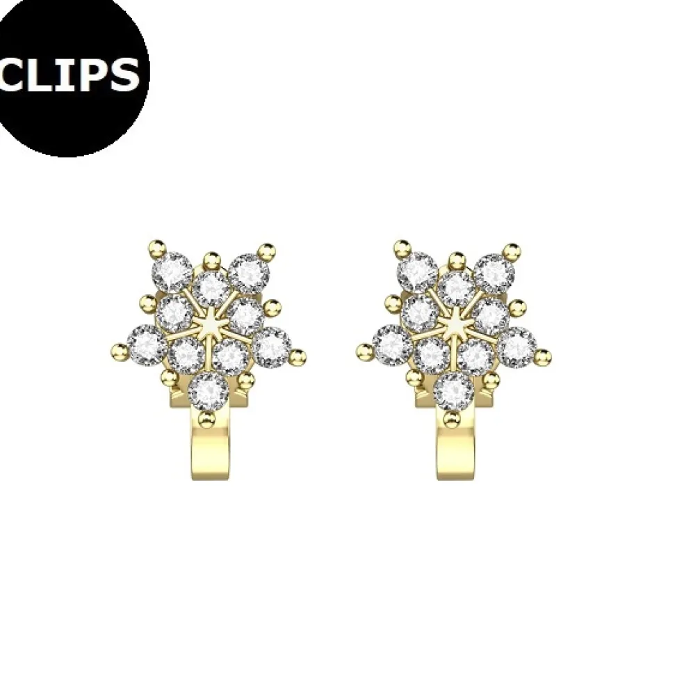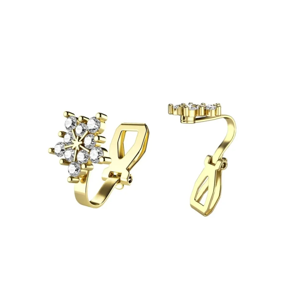 Ett par fina clipsörhängen designade för dig som vill bära smycken utan att ha hål i öronen. Med sitt gnistrande stjärnmönster erbjuder de en lekfull och samtidigt elegant touch till vilken outfit som helst. Örhängena är tillverkade i guldpläterat stål, vilket ger dem en vacker, varm glans och ett lyxigt utseende, samtidigt som de är hållbara och behåller sin lyster över tid.