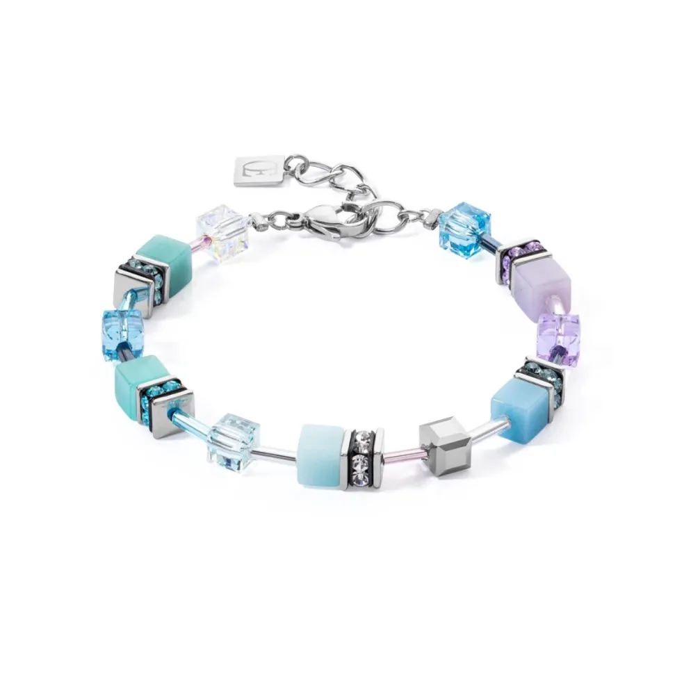 Utforska elegansen och skönheten hos Coeur de Lions armband GeoCUBE i den fascinerande färgkombinationen Aqua. Detta armband är en hyllning till nyanserna ljusblått och delikat lila.