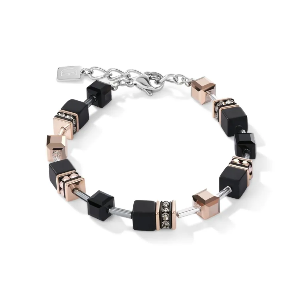 Detta GeoCUBE® armband från varumärket Coeur De Lion ligger vackert runt din handled, här ser Ni modellen i svart onyx med roséguldfärgade detaljer.