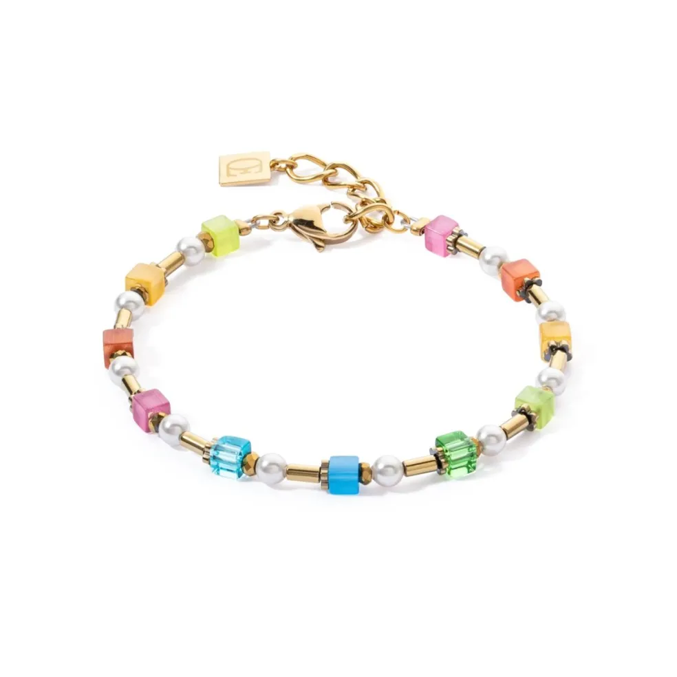 Modell; Bracelet Mini Cubes & Pearls Mix Gold Rainbow. Färgkod; 1516.