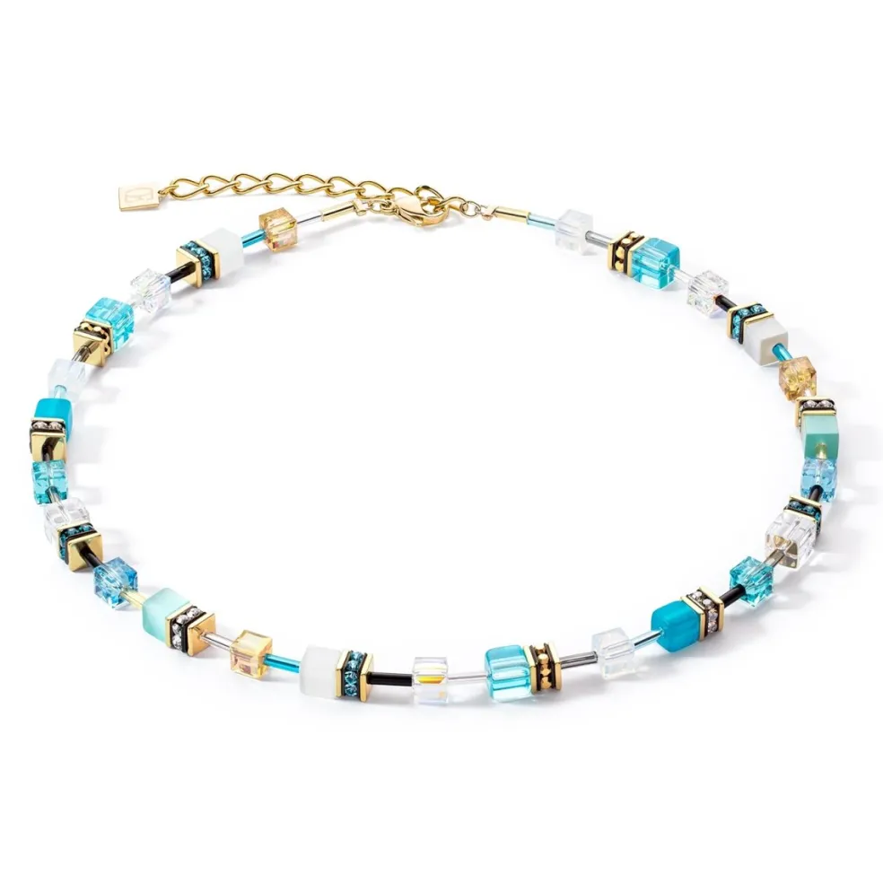 Halsband från Coeur De Lions GeoCUBE®-kollektion, här ser Ni halsbandet med mixade stenar och kristaller i blått och turkose på guldpläterad metall.