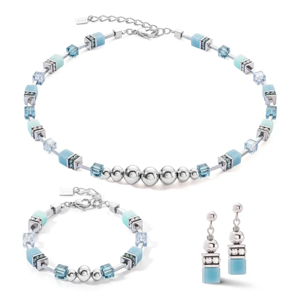 Modell; GeoCUBE® Fusion Spheres Earrings Ice Blue. Färgkod; 0720.