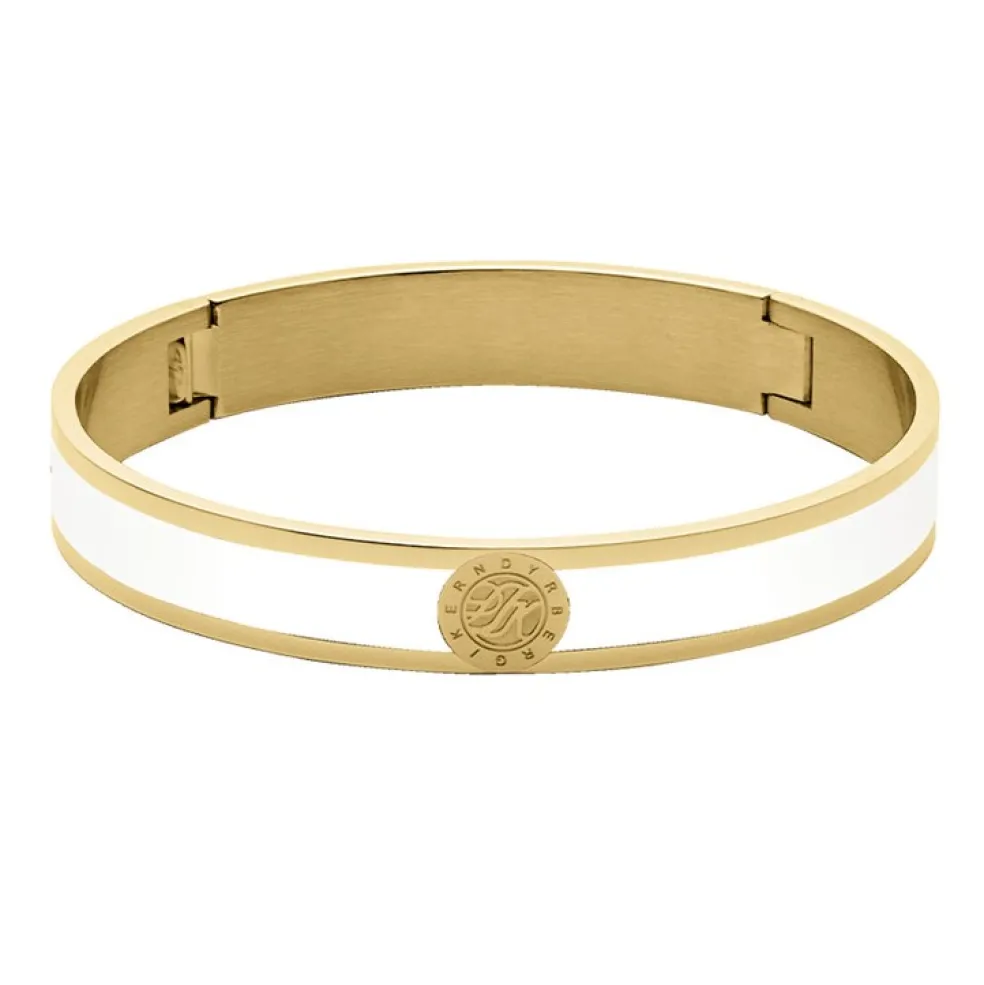 Armbandet tillverkat i en polerad guldtonad yta och vitfärgad emalj, utstrålar en klassisk men ändå iögonfallande skönhet. Varje detalj är varsamt utformad för att erbjuda en perfekt balans mellan modern elegans och klassisk charm.