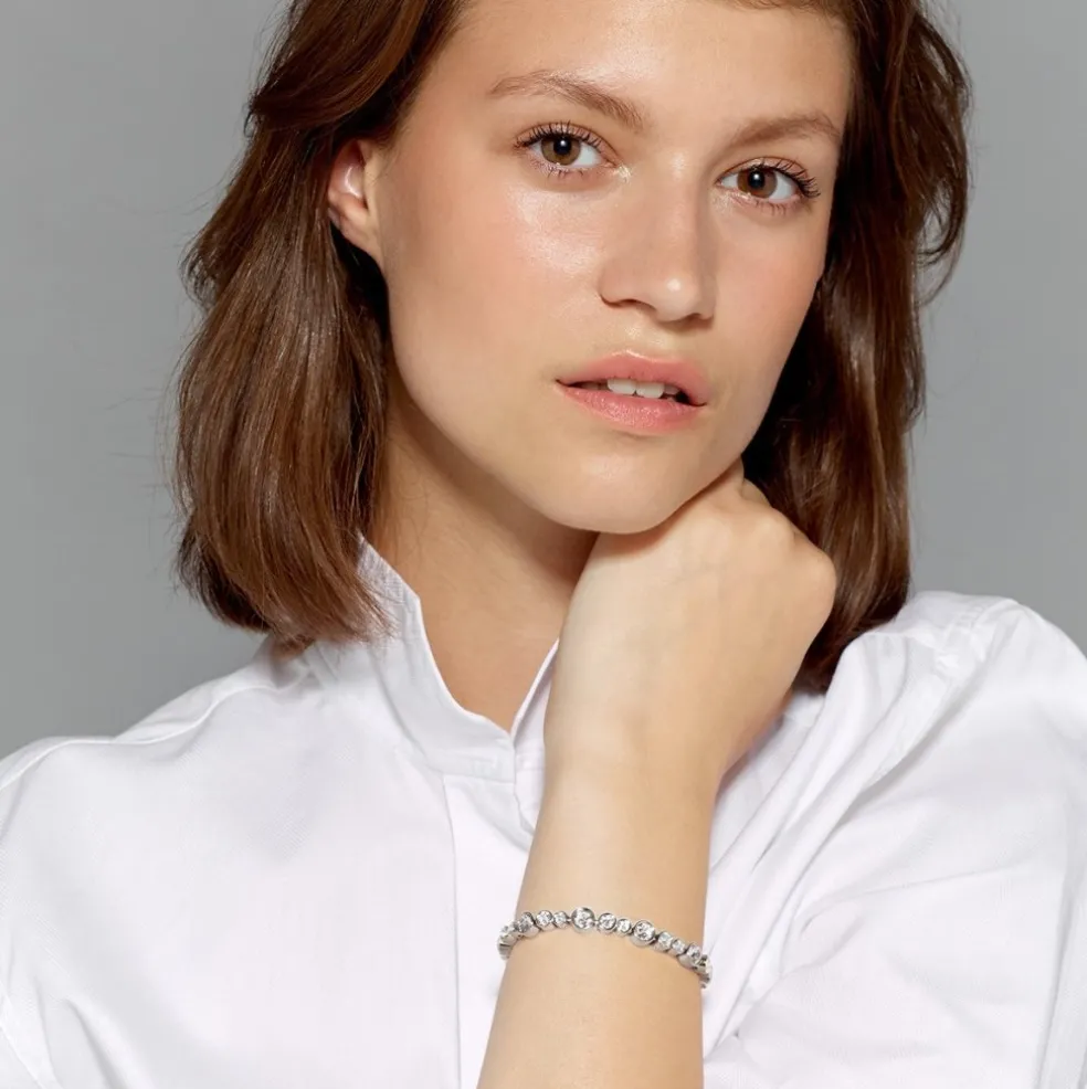Med varje kristall som fångar ljuset på ett förtrollande sätt, lägger detta tennisarmband till en diskret men ändå iögonfallande glans till din stil. Varje detalj är noga utformad för att erbjuda en perfekt balans mellan stil och komfort, vilket gör detta armband till det perfekta valet för alla tillfällen.