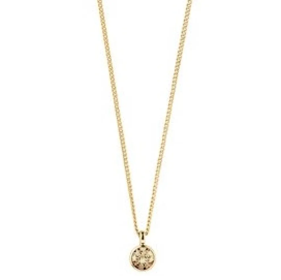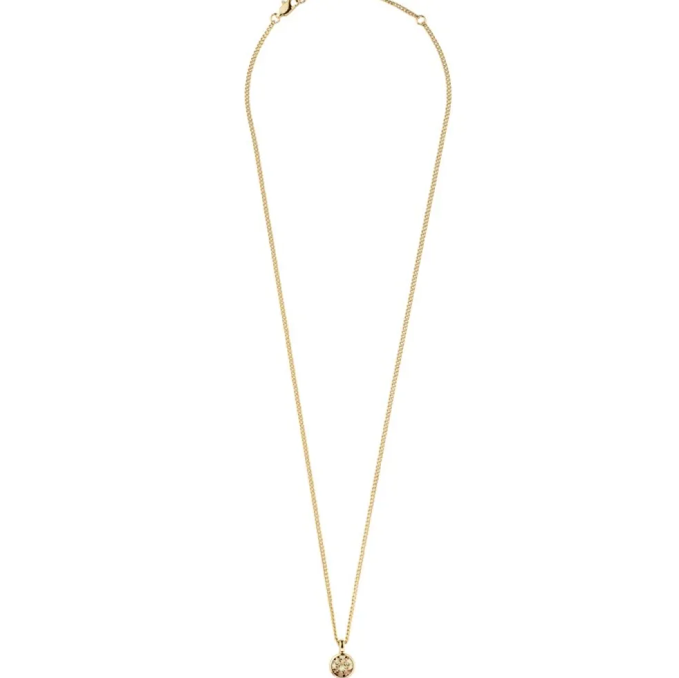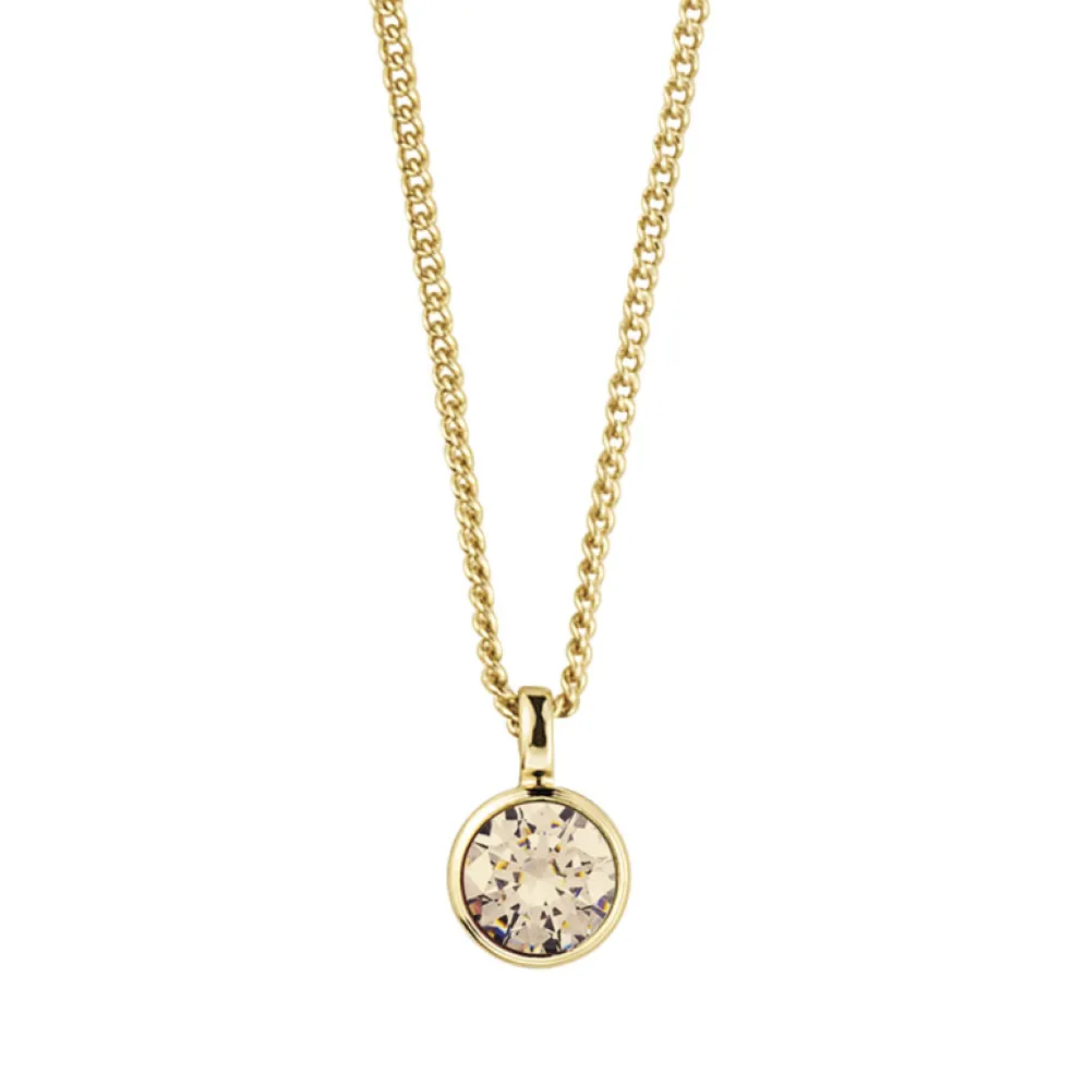 Ette är ett klassiskt och ikoniskt halsband från Dyrberg/Kern, här i guldfärgad metall med den populära färgen golden shadow på kristallhänget.