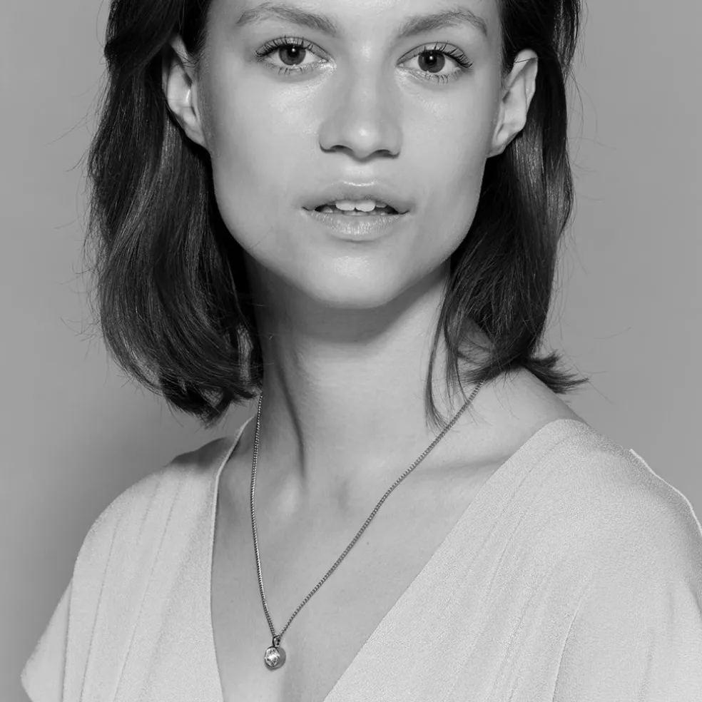 Klassisk och feminint halsband från Dyrberg/Kern med en liten rund kristall på.