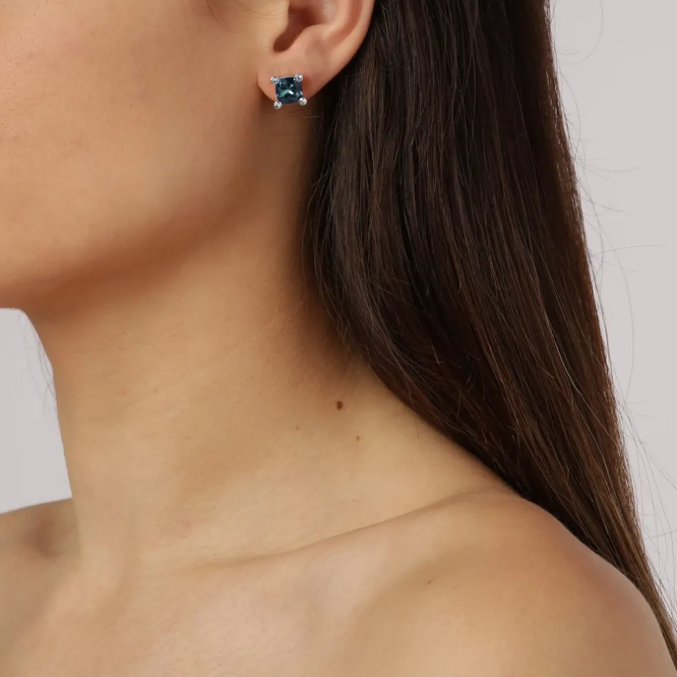 Örhänget Clara från Dyrberg/Kern är fantastiskt fint designat med sina fyra "klor" som håller fast den stora kristallen i mitten. På varje "klo" sitter det en liten klar kristall och den stora kristallen i mitten är blå, allt på silverpläterad metall.