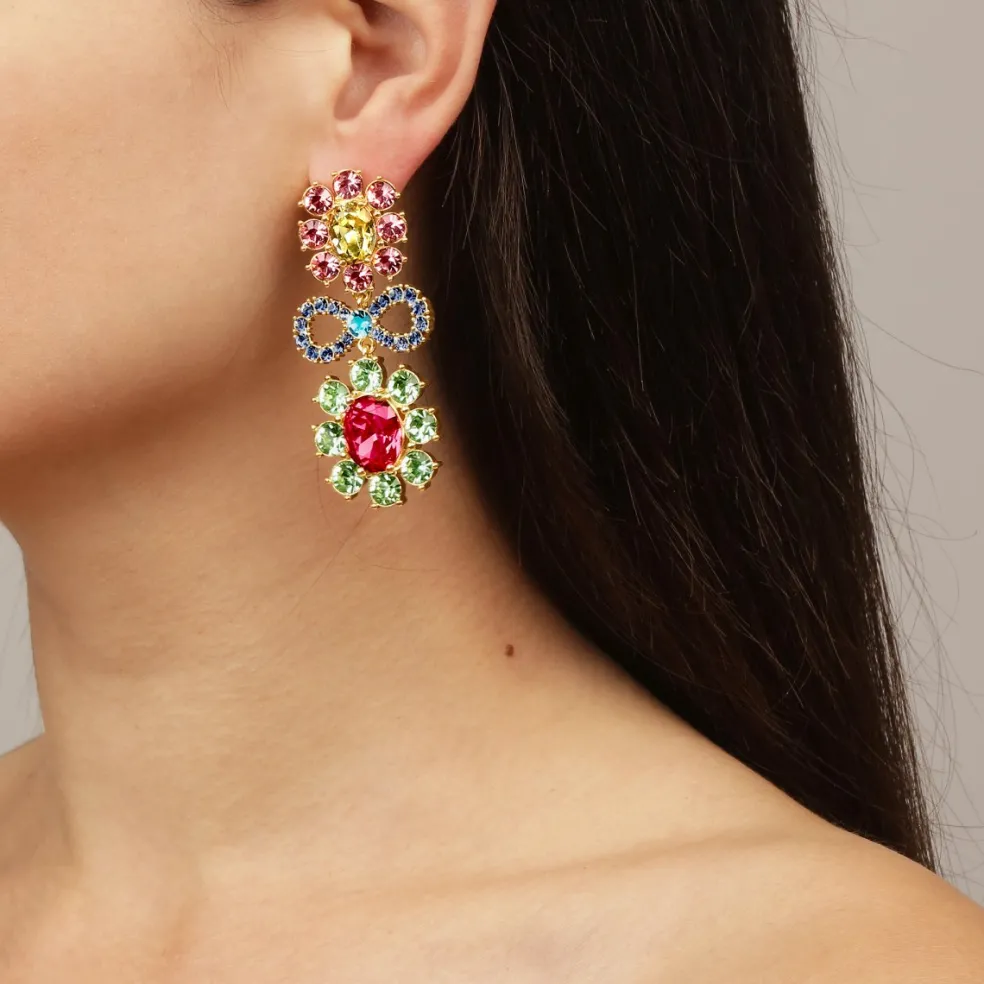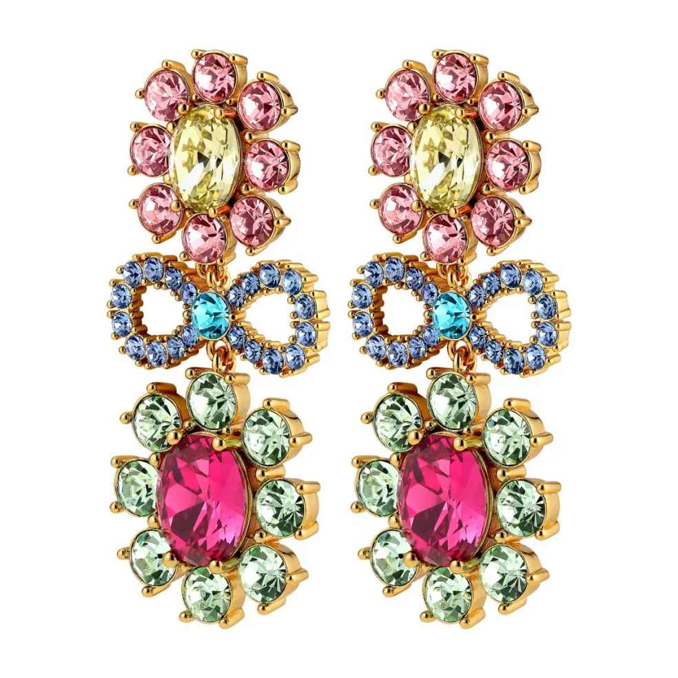 Dessa örhängen är ett riktigt konstverk som tar din stil till nya höjder. Med kristalldekorationer i form av blommor och rosetter förmedlar de en känsla av glädje och extravagans som inte går att ignorera.
