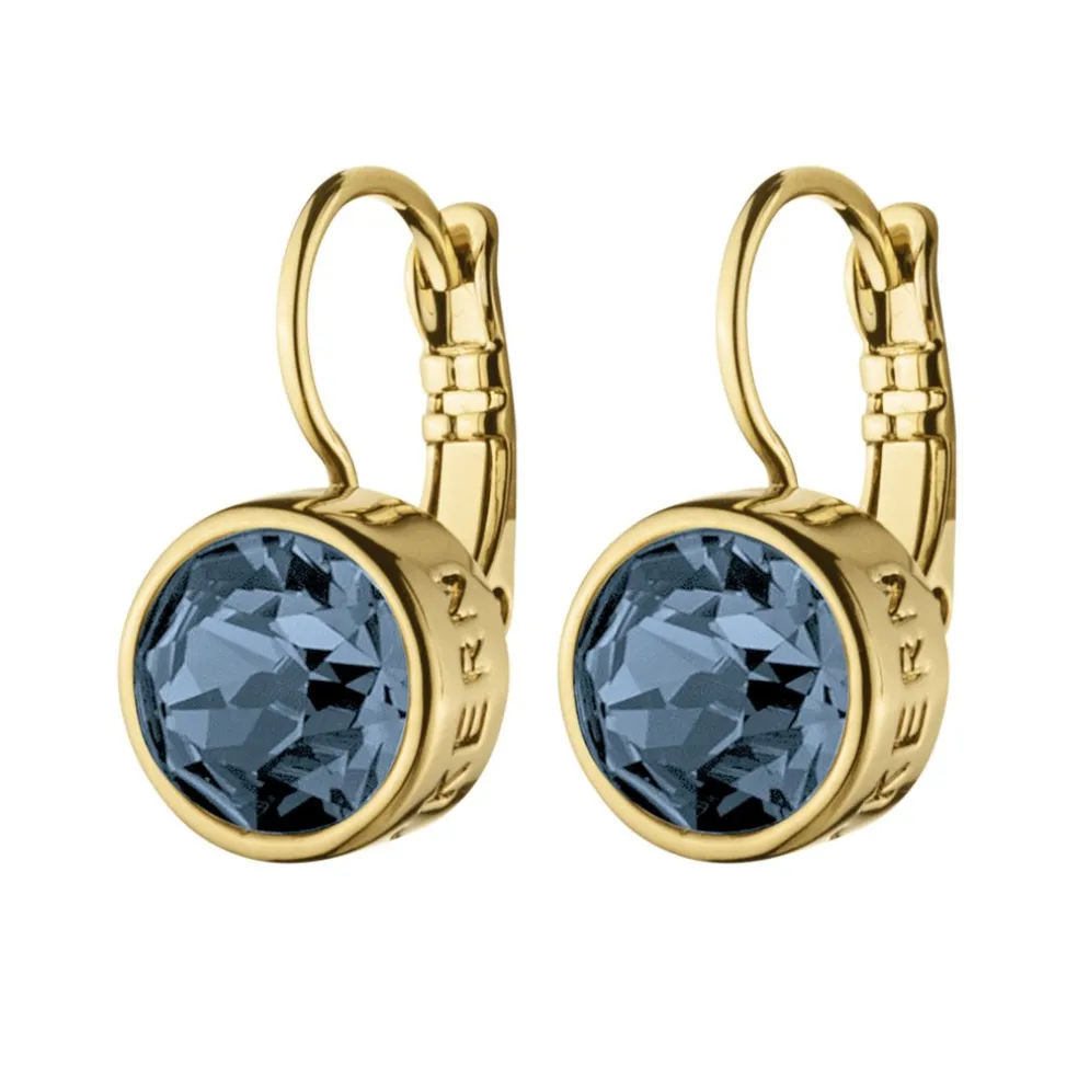Här ser Ni det klassiska örhänget Louise med blåa kristaller på, modellen kommer från varumärket Dyrberg/Kern.