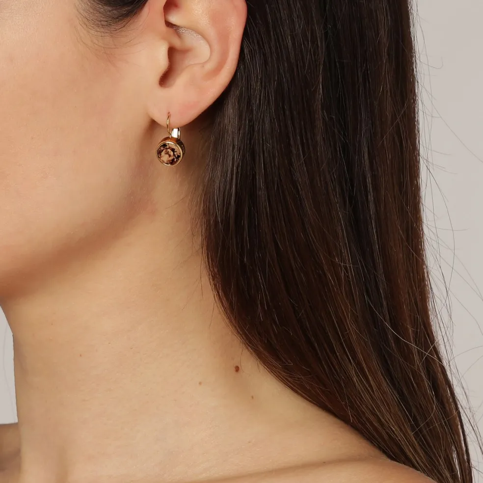 Varje par är tillverkade som en hyllning till Dyrberg/Kerns engagemang för kvalitet och design, och är skapade för att vara en långvarig del av din smyckeskollektion. Här ser du den populära modellen Louise med bruna kristaller.