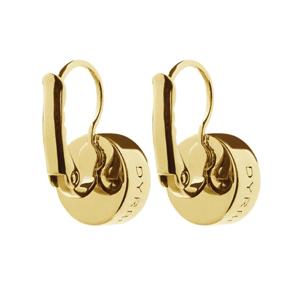 Dyrberg/Kern presenterar här sina ikoniska och bästsäljande örhängen som är en fusion av elegant design och klassisk Skandinavisk stil. Med en lyxig guldfinish och en grå solitär kristall av högsta kvalitet, är dessa örhängen ett måste för varje smyckesälskare.