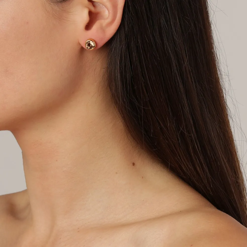 Örhänget Nobles kommer från varumärket Dyrberg/Kern och är av så kallad bezelmodell. Dessa klassiska örhängen pryds av en solitärkristall i en vacker champagneton kallad Golden. Tillverkade i polerad mässing och belagda med en slitstark guldplätering, kombinerar de hållbarhet med en förtrollande glans.