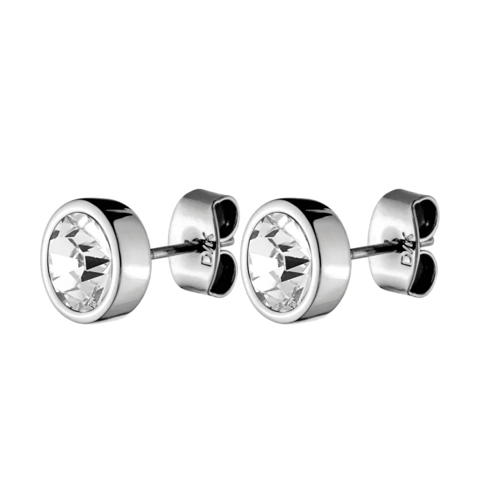 Små och eleganta örhängen med stift från Dyrberg/Kern med en klar kristall på.