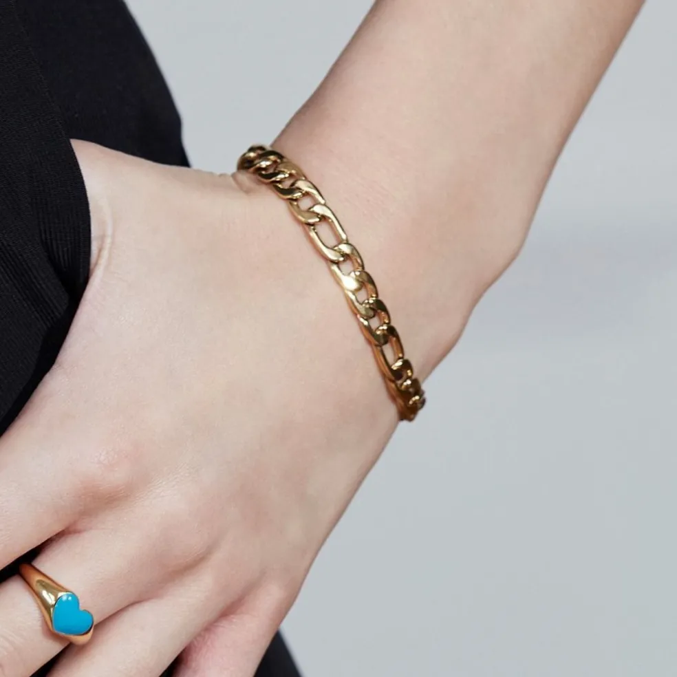 Här ser du armbandskedjan Figaro i en riktig chunky chain med sitt lite rustika, klassiska utseende. Snyggt armband i blank 14K guldplätering som du gärna bär tillsammans med andra armband från Edblad.