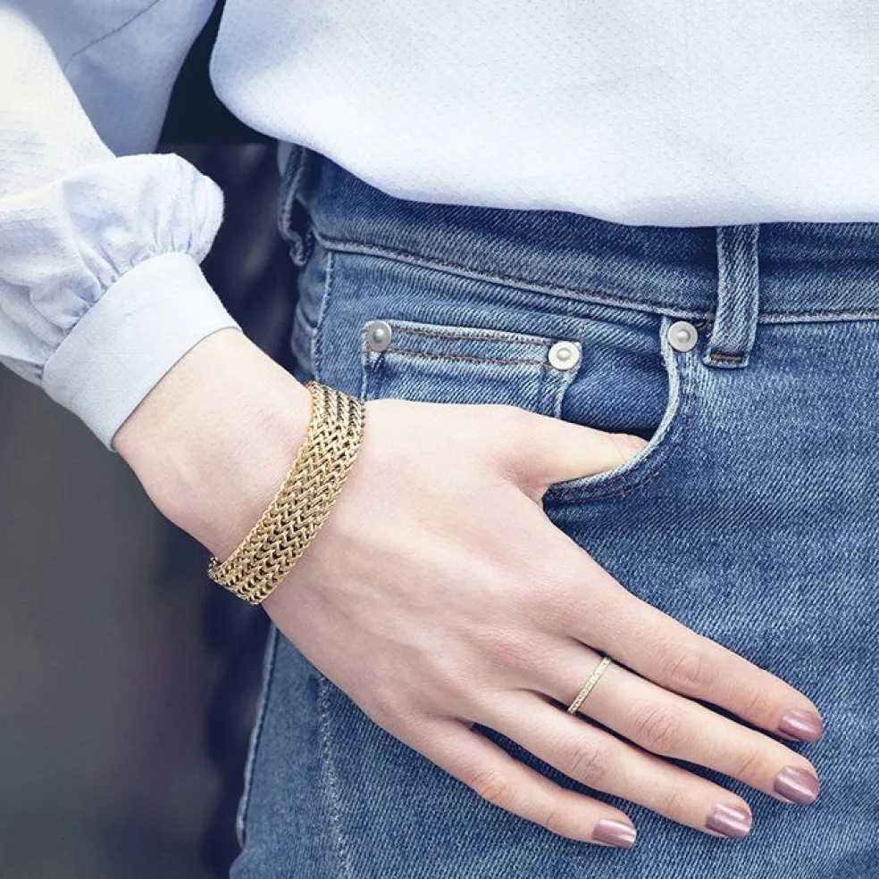 En klassiker, armbandet Lee från Edblad. Armbandet består av många ledade länkar monterade tillsammans i ett mycket fint hantverk. Lee sitter snyggt på handleden och passar till alla tillfällen, här i guld.