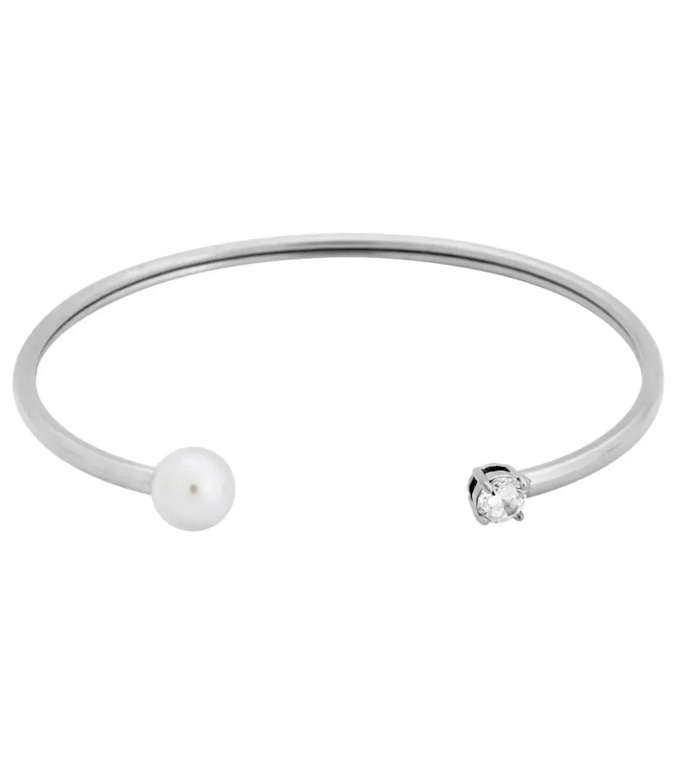 Klassisk armring Luna från Edblad med pärla och elegant infattad klara stenen i en mycket snygg kombination. Armbandet är flexibelt i sidled och tas enkelt på med en lätt vridning, här i stålfärg. Luna bangle är mångas favorit och som man bär alla dagar i veckan.