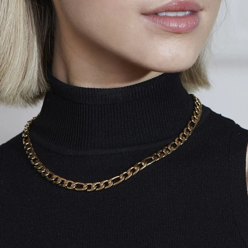 Figaro halsband är perfekt för layering, men också snygg att bära som den är. Ses här i blank 14K guldplätering.