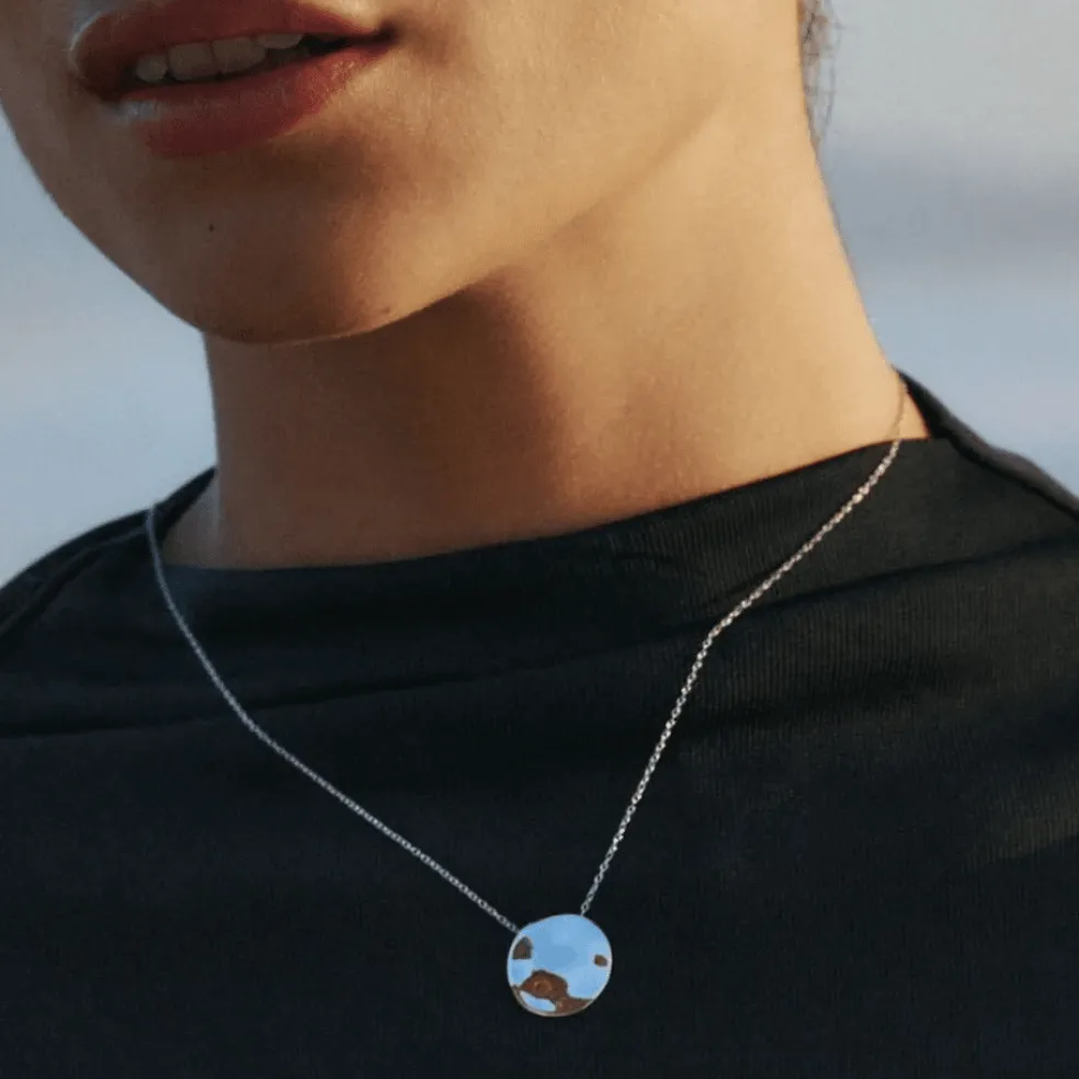 Med sin minimalistiska design passar Flowy-halsbandet till alla tillfällen, från kontoret till kvällens middagar. Hänget, med en diameter på 1,6 cm, fångar ljuset på ett sätt som ger smycket ett dynamiskt uttryck, vilket gör att det ständigt förändras och glänser med varje rörelse.