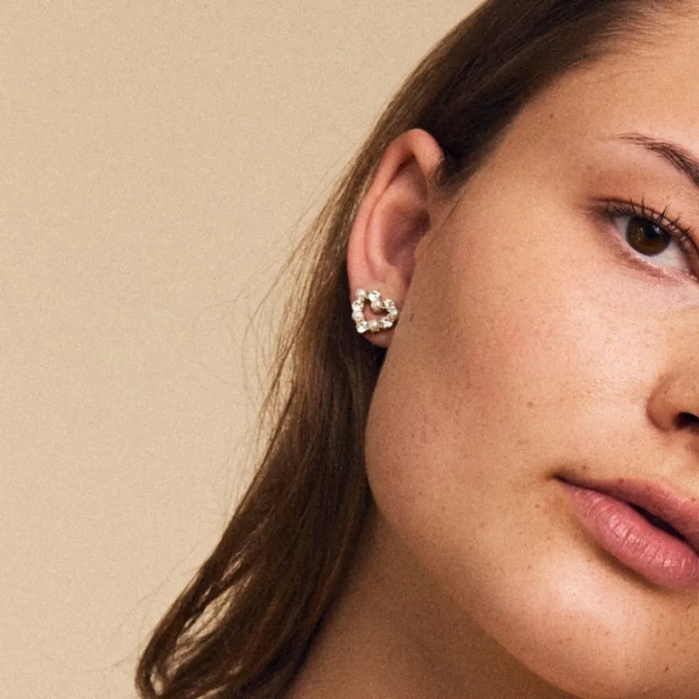 Modell; Affinity Pearl Heart Studs Gold.
